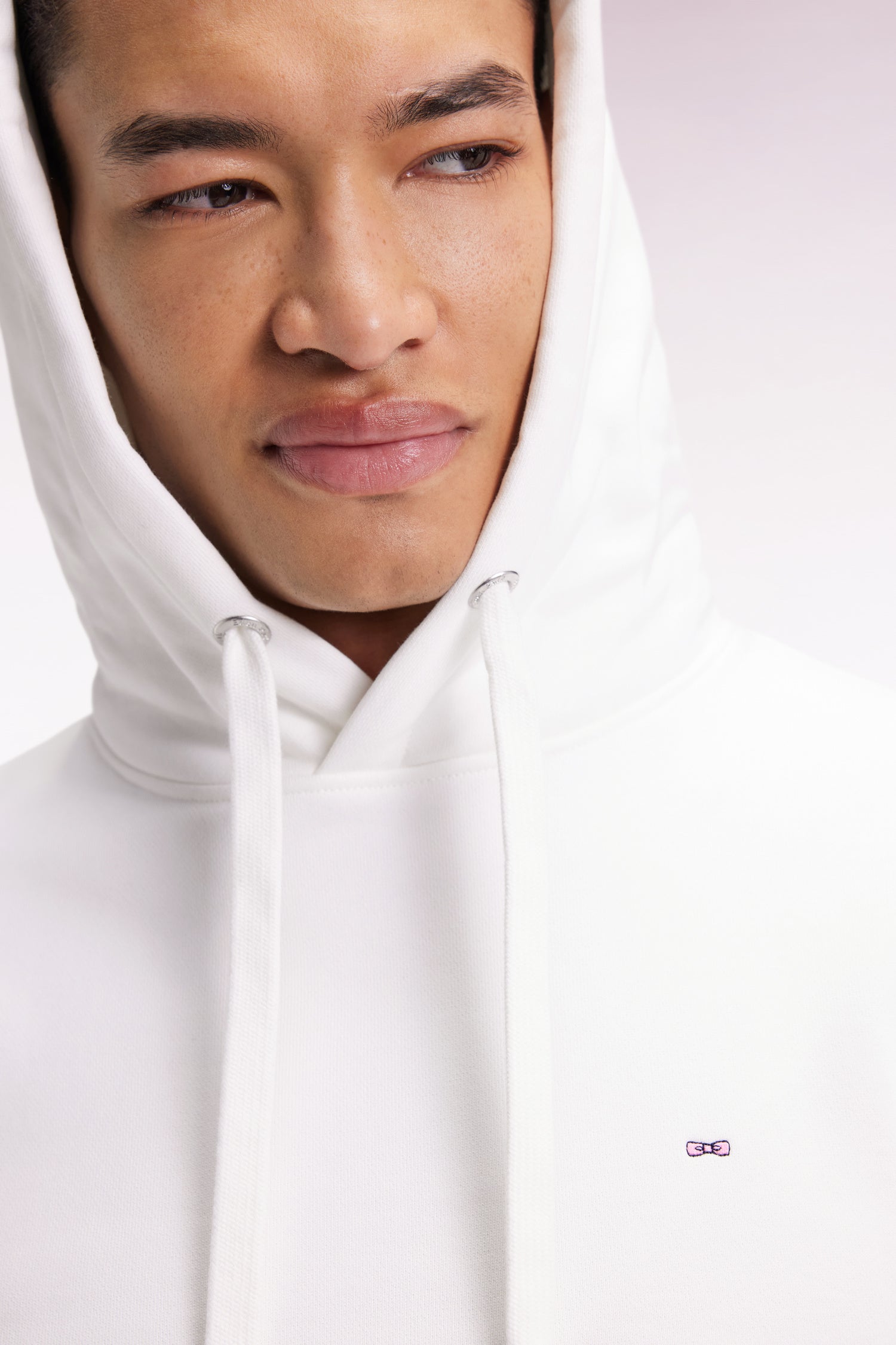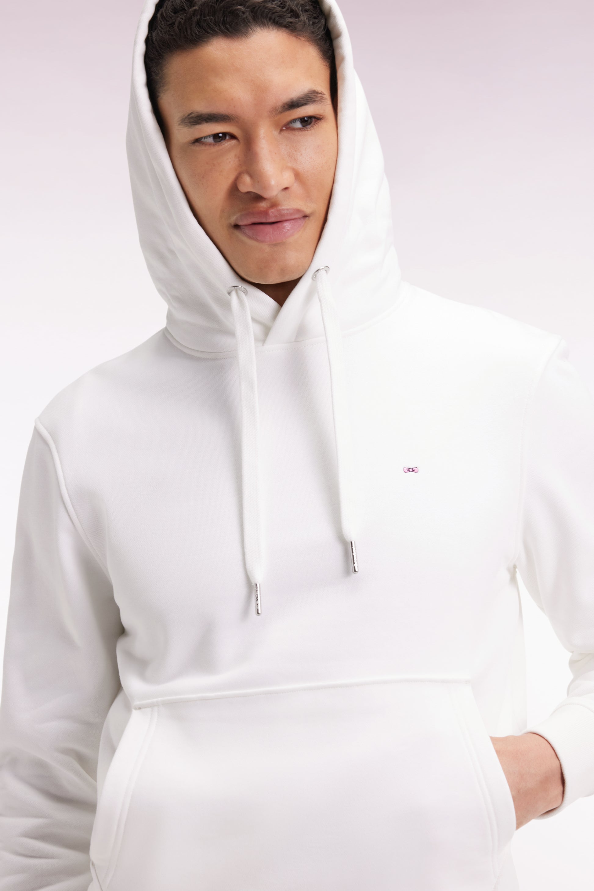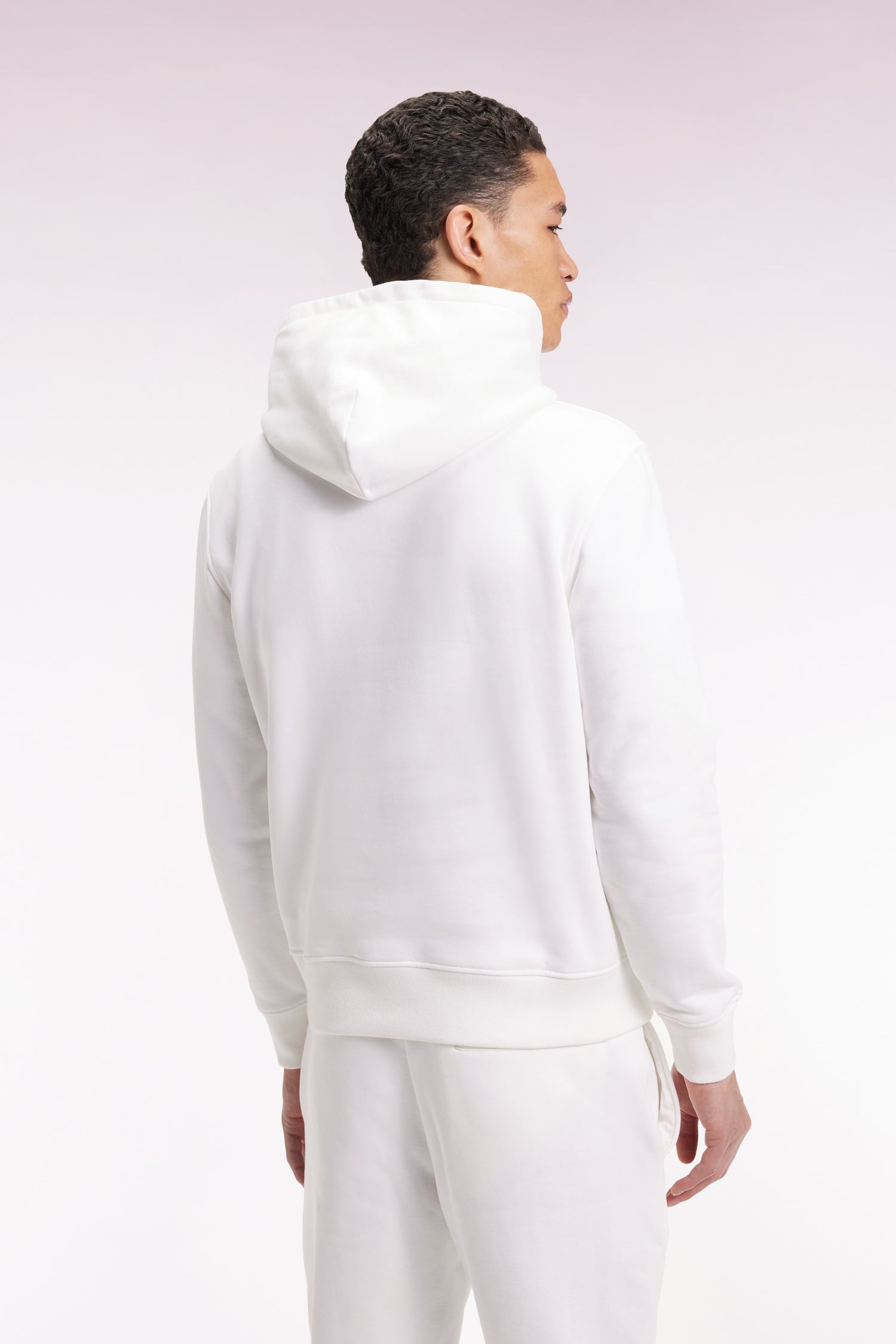 White cotton hooded sweatshirt, straight cut