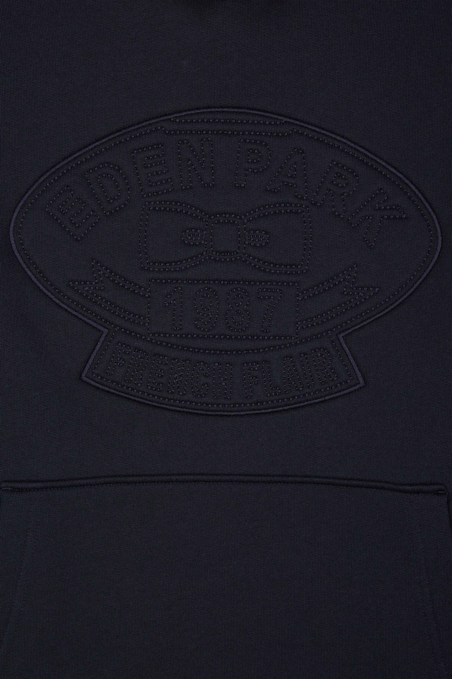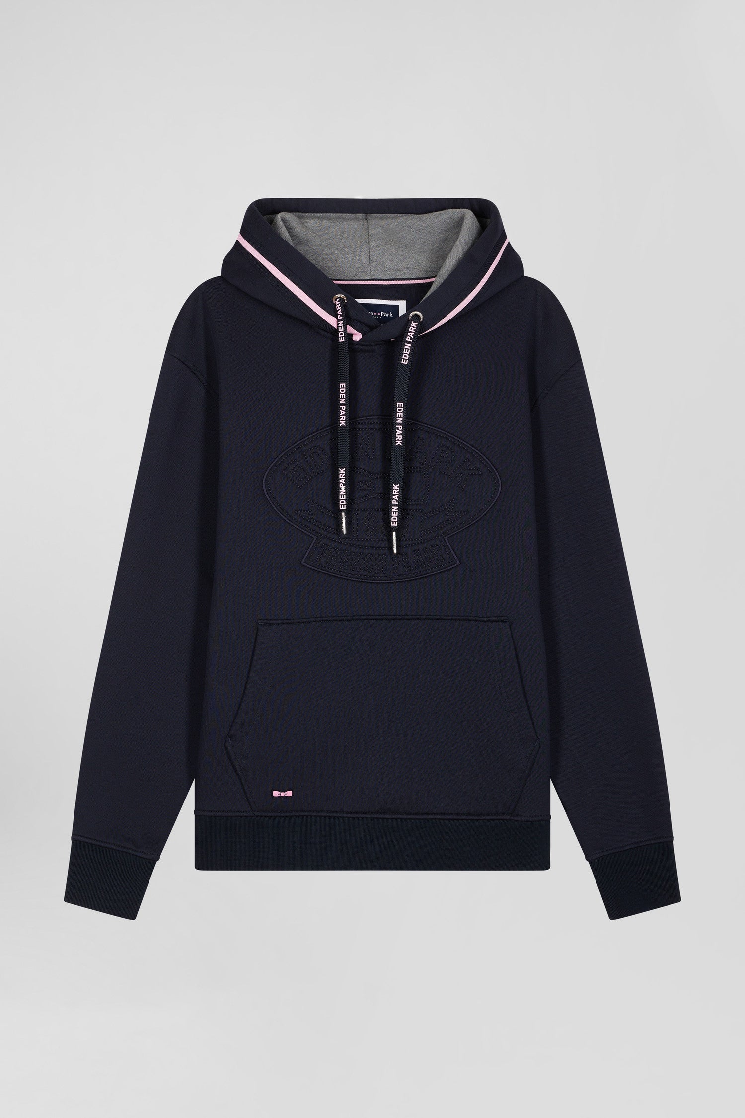 Relaxed navy blue cotton blend hoodie with padded embroidery