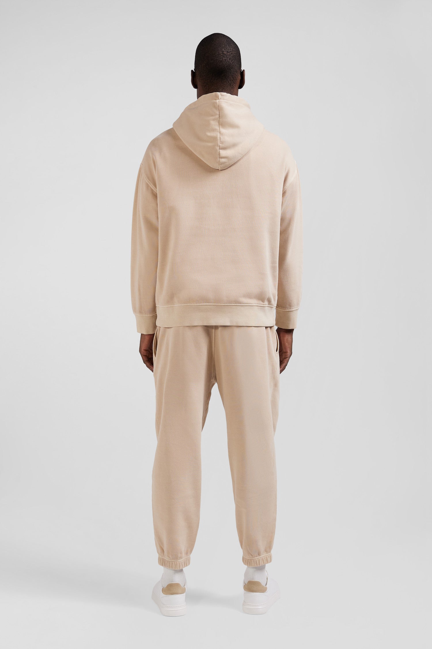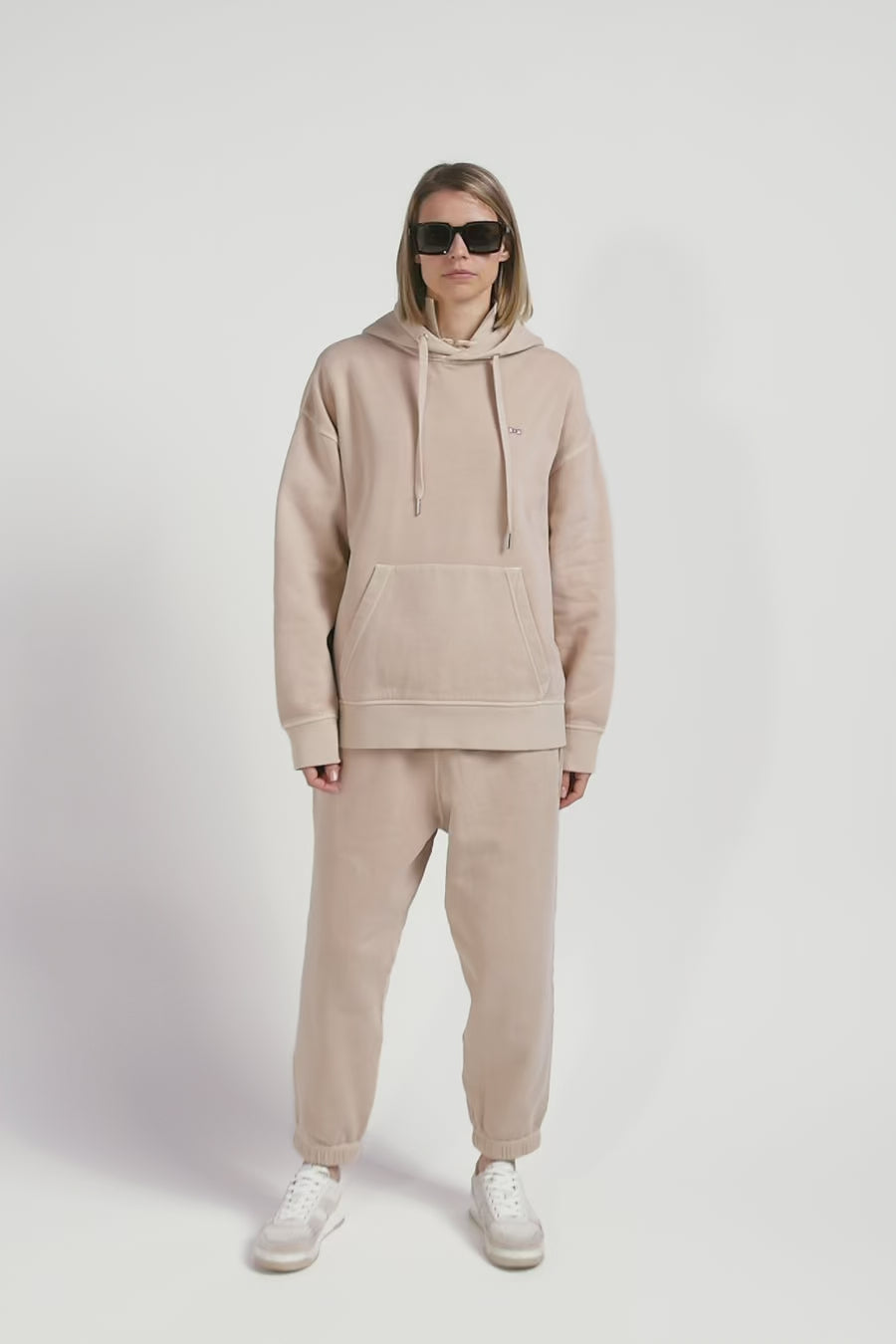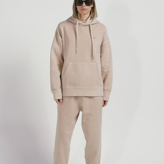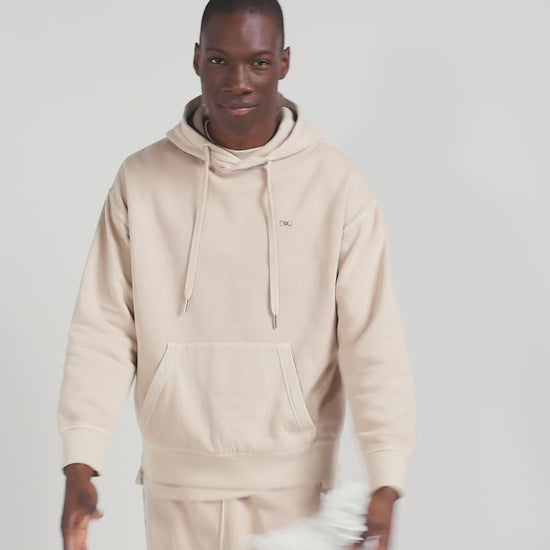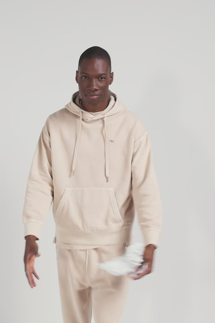 Oversize beige unisex dyed cotton fleece hoodie