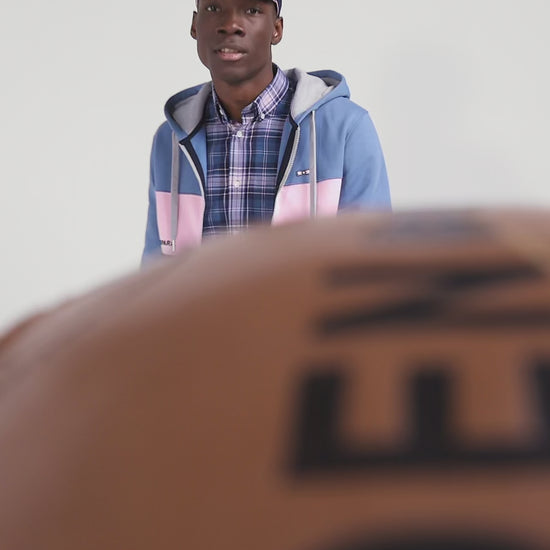 Regular blue colorblock zipped cotton hoodie