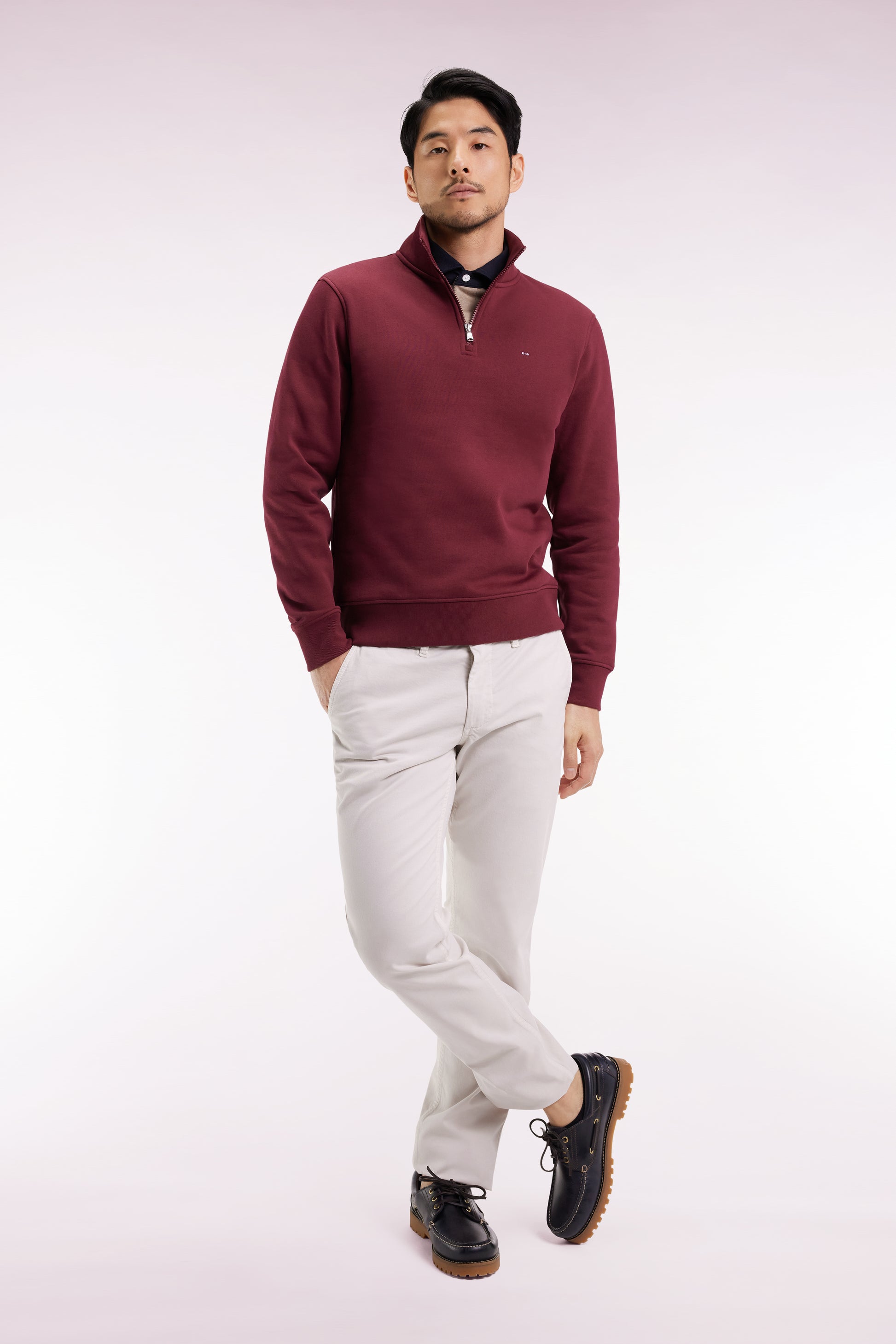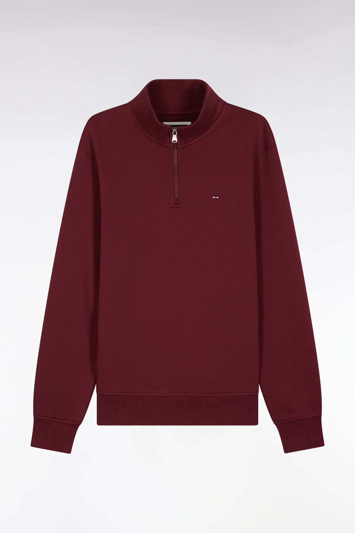 High-neck zip-up sweatshirt in burgundy cotton fleece