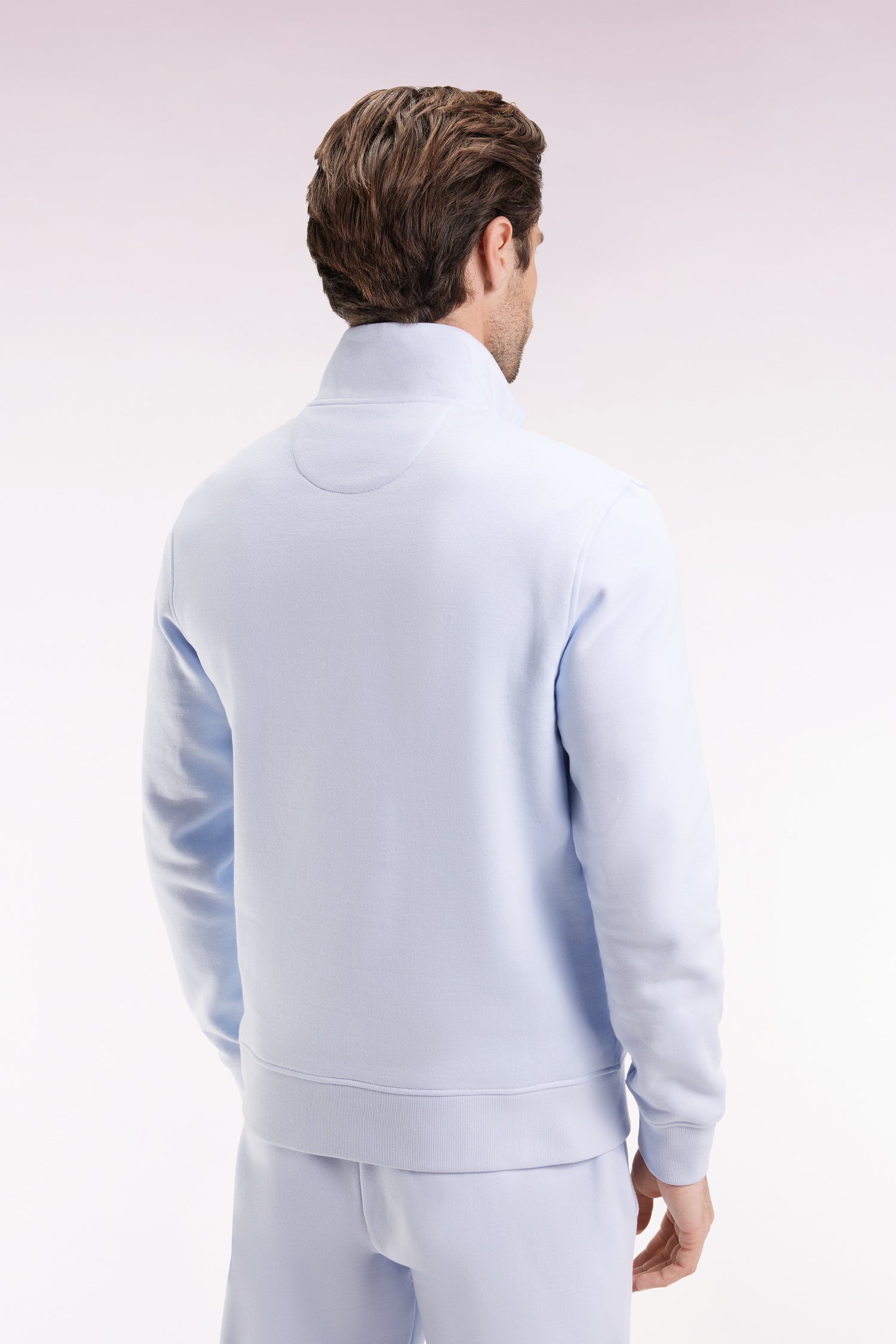 This zip-up stand-up collar sweatshirt in brushed fleece is a casual wardrobe essential. Its ribbed collar, cuffs and hem ensure a comfortable fit. Available in a wide range of colors, this men's sweatshirt goes equally well with coordinated jogging suits or jeans.