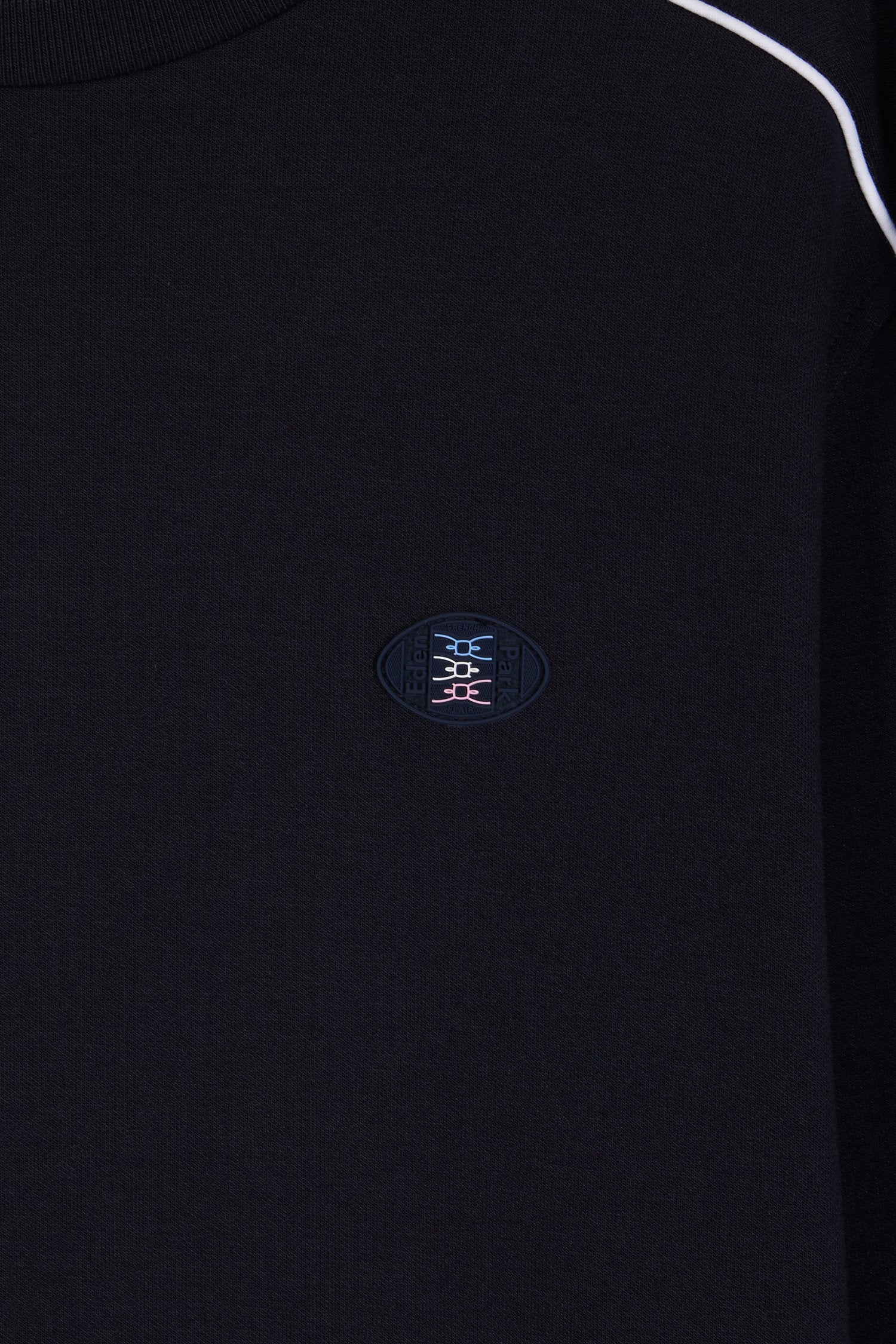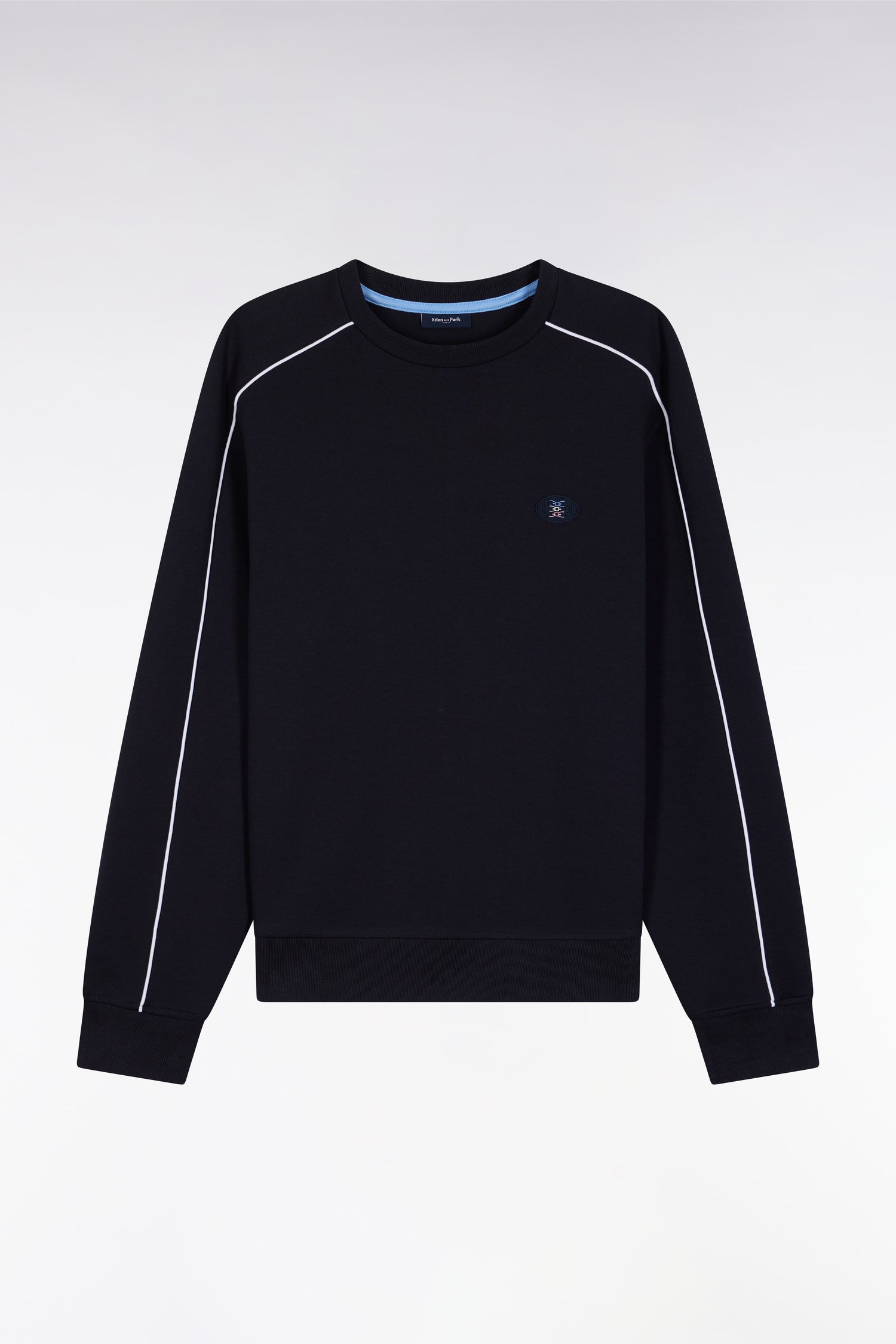 This round-neck sweatshirt in a brushed cotton fleece blend combines comfort and character. Available in black or navy, it features back embroidery with raised contours and contrasting piping to enhance the silhouette. The ribbed neckline and cuffs reinforce the structured look of this sporty-chic model, emblematic of the Eden Park wardrobe.
