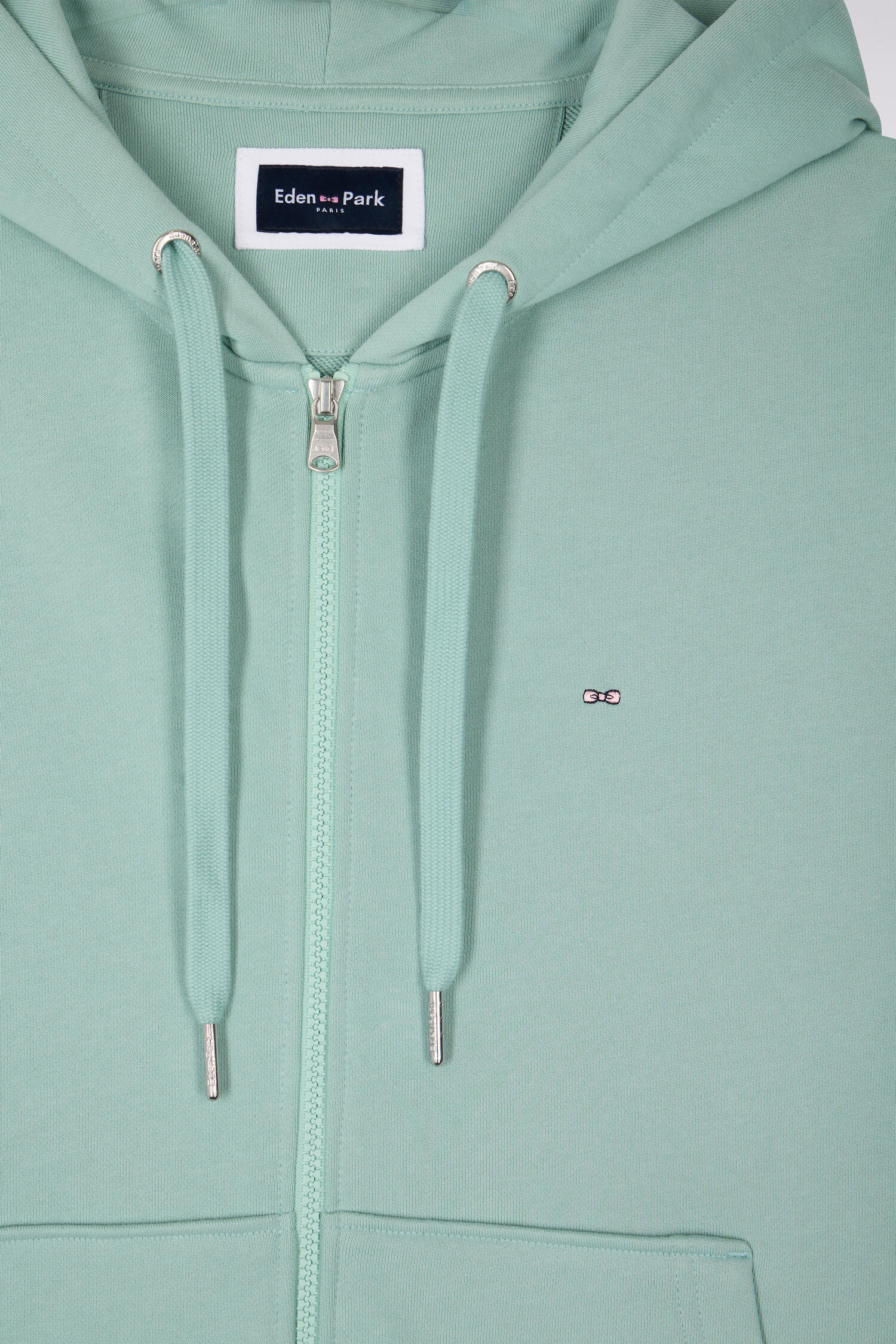 Sweatshirt zippé à capuche en molleton coton vert d'eau