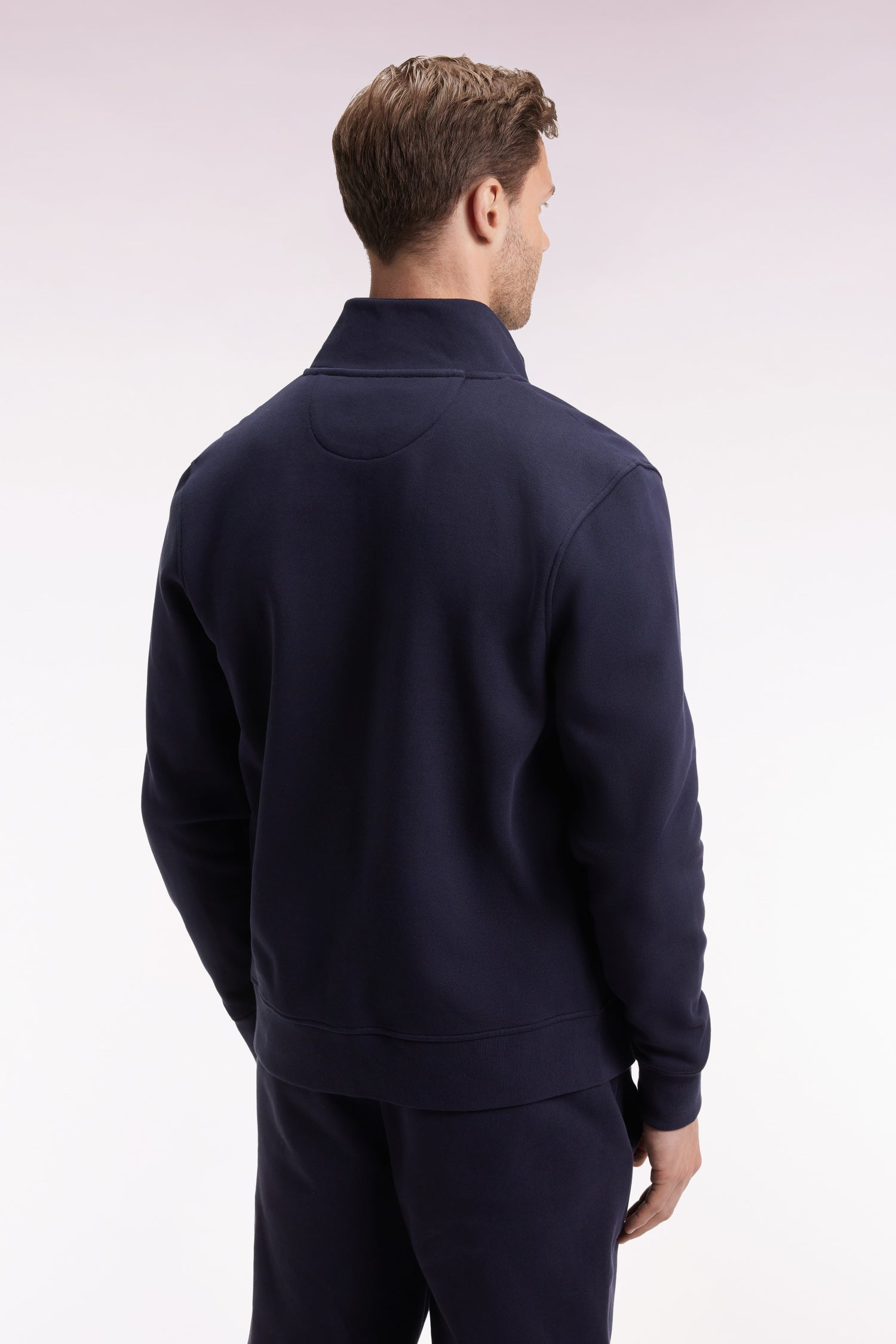This zip-up sweatshirt in brushed fleece combines comfort with a structured look. Its straight cut, solid-colored cotton fleece and full-zip closure make it a functional basic that's easy to layer over a T-shirt or polo shirt. A relaxed, soft-wearing essential, designed to complement all everyday silhouettes thanks to our color options