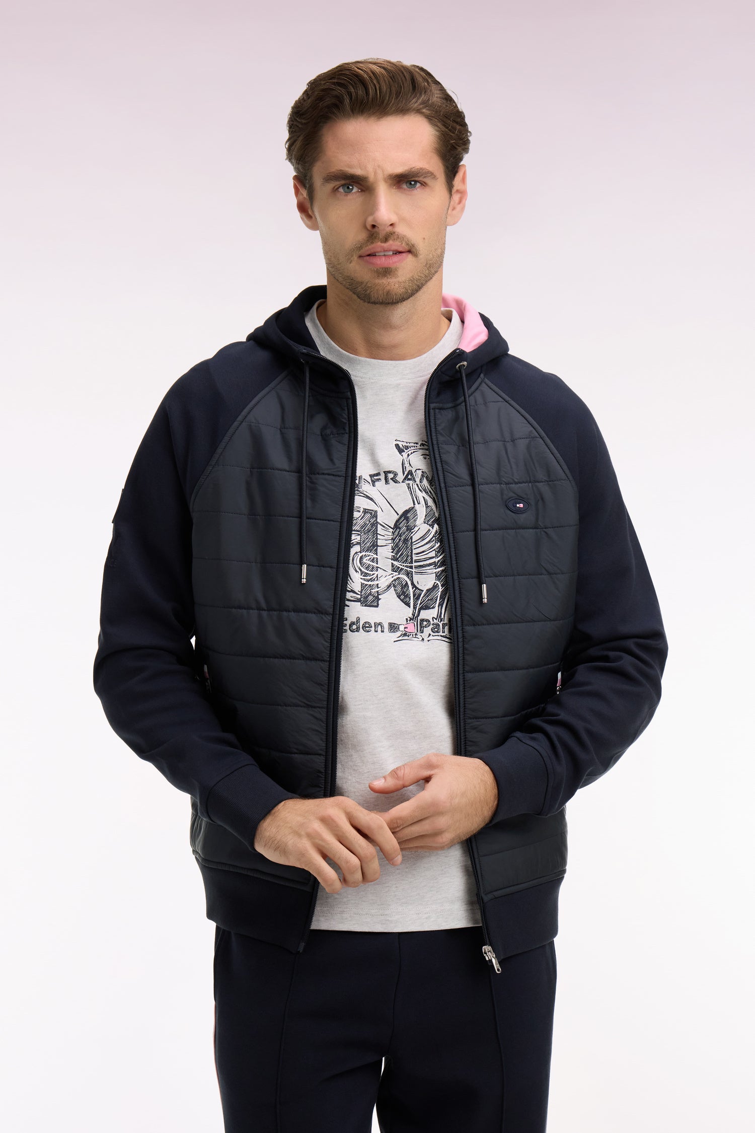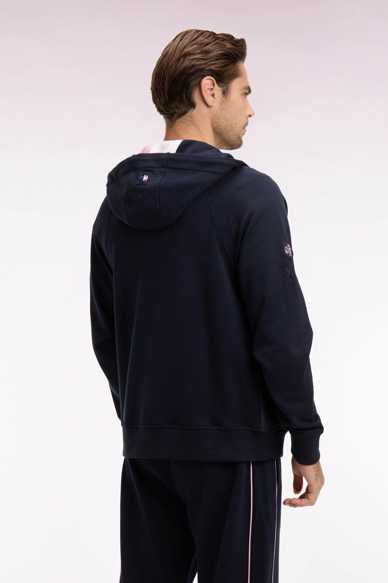 Ce sweatshirt zippé bicolore réalisé dans une coupe raglan plus moderne associe une parmenture frontale matelassé marine à des manches, un dos et une capuche en molleton blanc ou marine, selon le coloris choisi, pour une allure contemporaine sans compromis sur le confort. Le jeu de couleurs contrastées, la capuche doublée et les détails signature du XV de France créent une silhouette athlétique et moderne. Un modèle pensé pour les journées fraîches, entre confort et style urbain que vous le portiez en sweatshirt ou en veste de mi-saison.