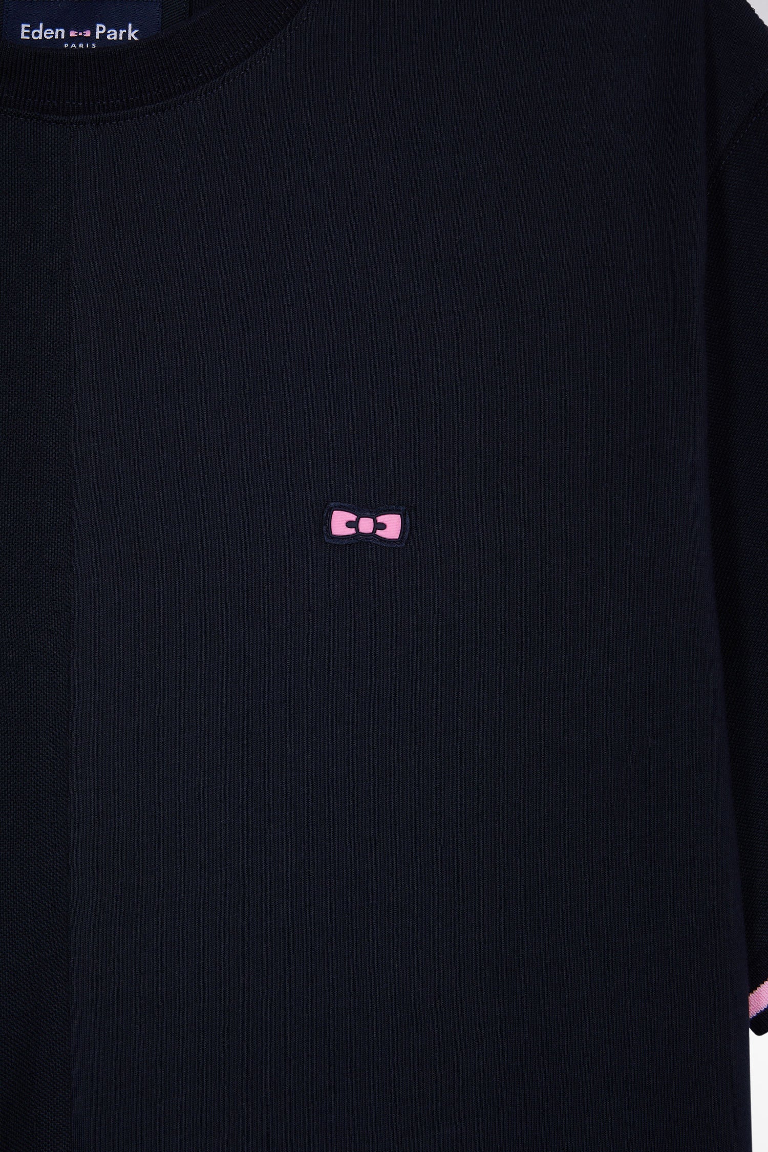With its signature finishes inspired by our rugby DNA: Eden Park logo on the back, striped ribbing on the sleeve and gummed bow tie emblem on the chest, this navy men's T-shirt makes no compromises on style. Made from pure cotton jersey in a slightly loose fit for added comfort.