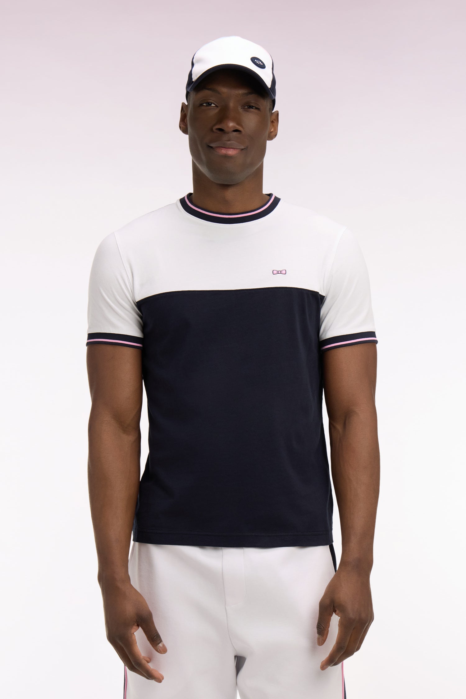 T-shirt à manches courtes en bicolore blanc et marine coupe regular