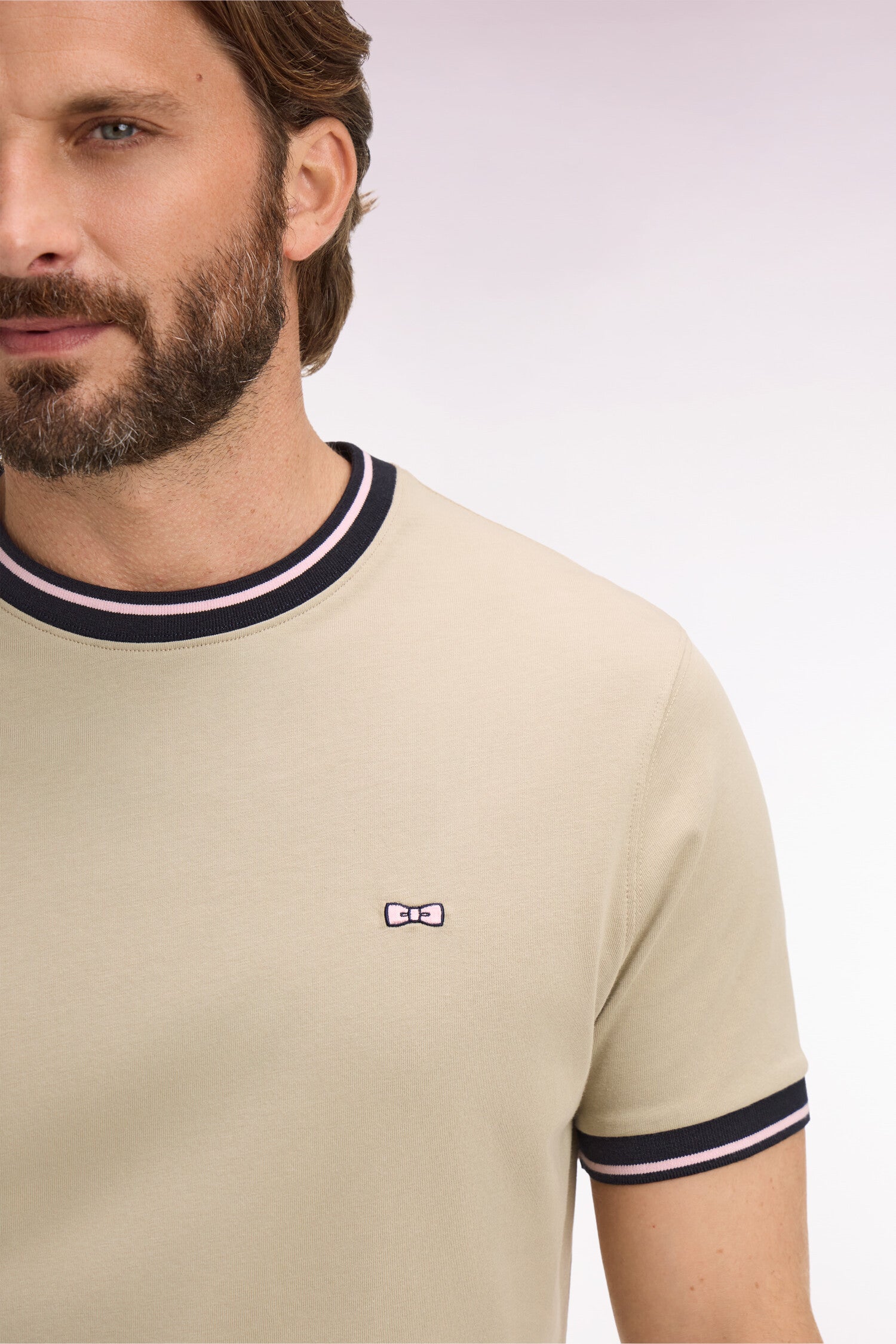 T-shirt à manches courtes en coton beige brodé coupe regular