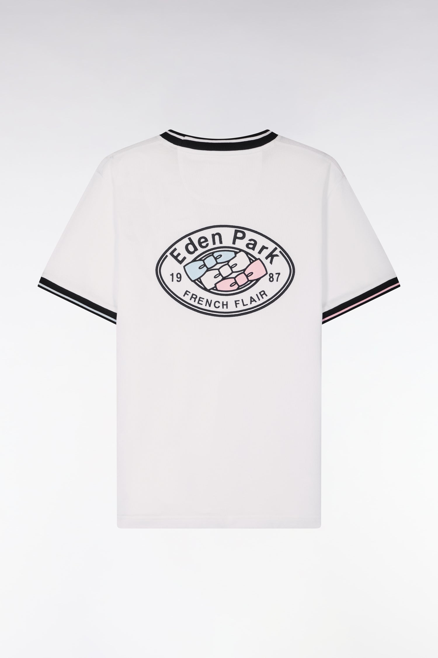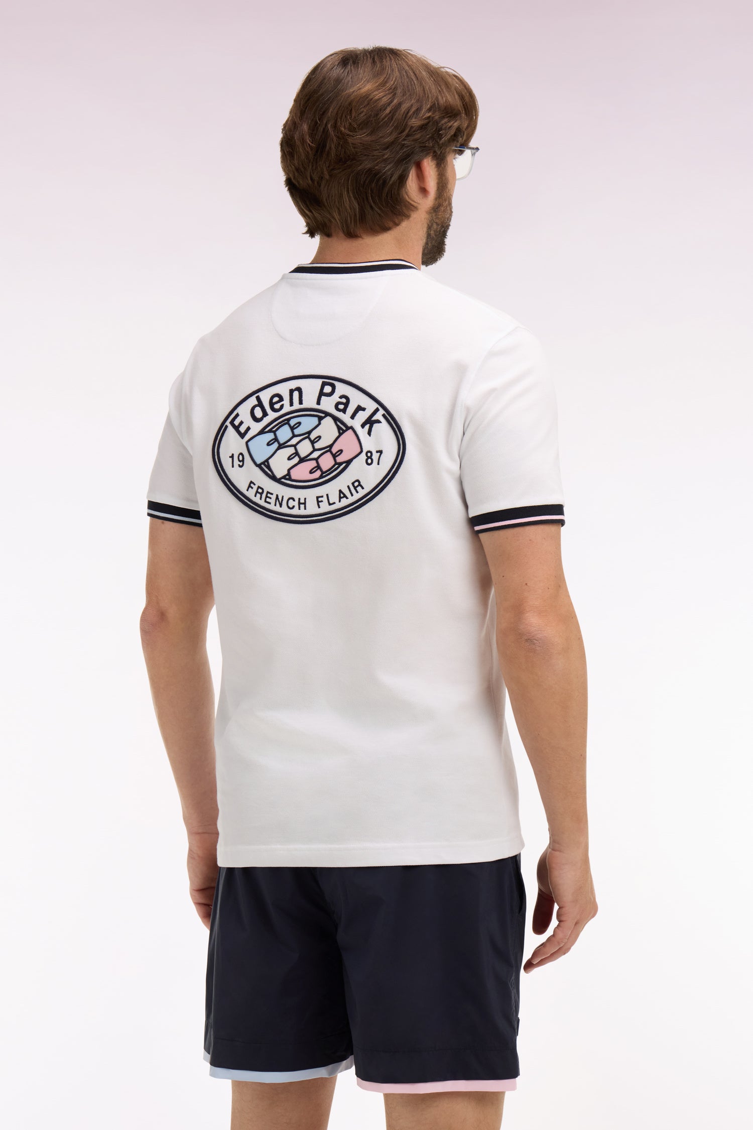 Designed as a revisited basic to enrich your spring-summer outfits, this short-sleeved T-shirt in white cotton jersey features a strong visual detail to structure the silhouette: a large back embroidery inspired by rugby and the strong codes of our House. A versatile piece, ideal for putting together simple but neat looks combined with jeans, jogging pants or shorts on vacation.