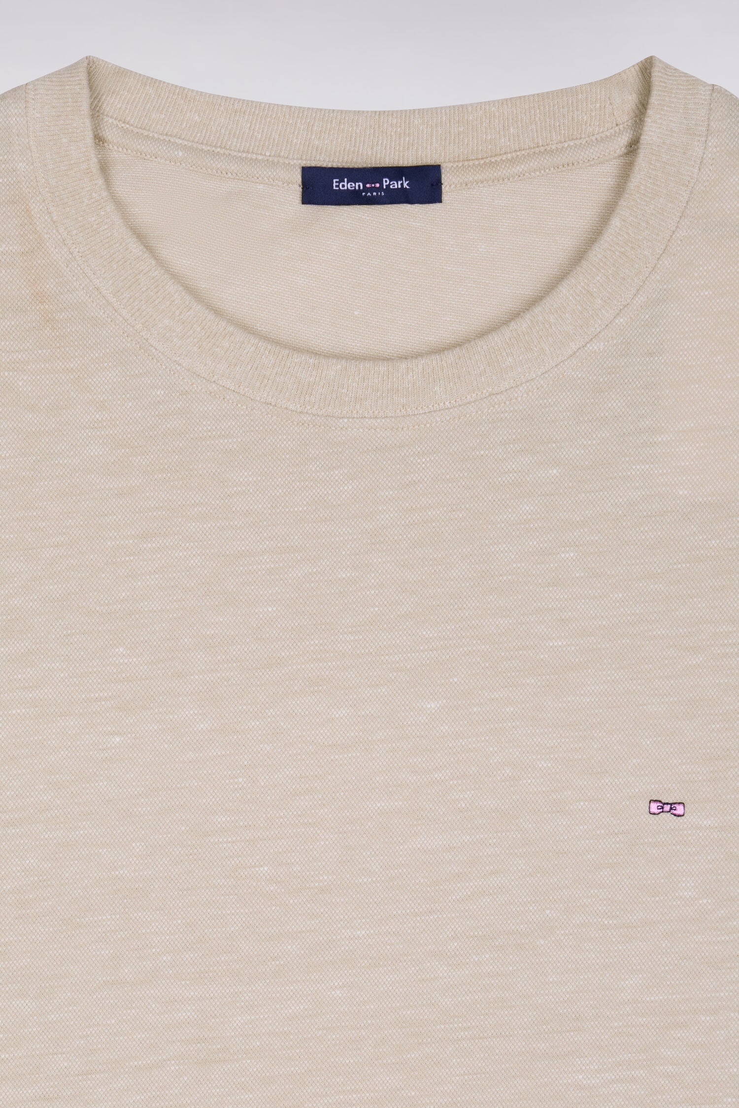 T-shirt à manches courtes en coton et lin beige coupe regular