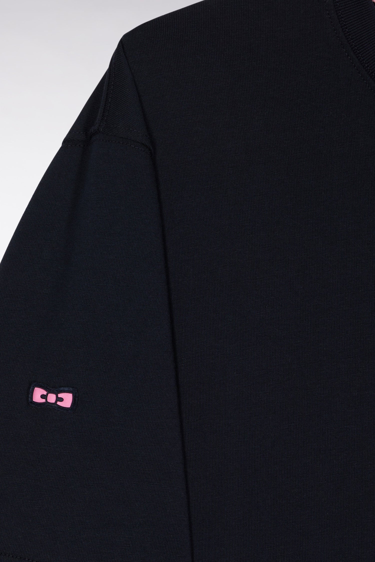 This masculine T-shirt in soft cotton jersey is a tribute to mastered simplicity. Perfect for layering or worn on its own, it boasts a streamlined silhouette punctuated by a small embroidered bow tie on the sleeve and our embossed logo discreetly added beneath its round collar marked by rib-knit detailing. A timeless, lightweight and breathable model, true to Eden Park's sporty elegance. This model is available in black or navy, and can be worn with jeans or jogging pants.