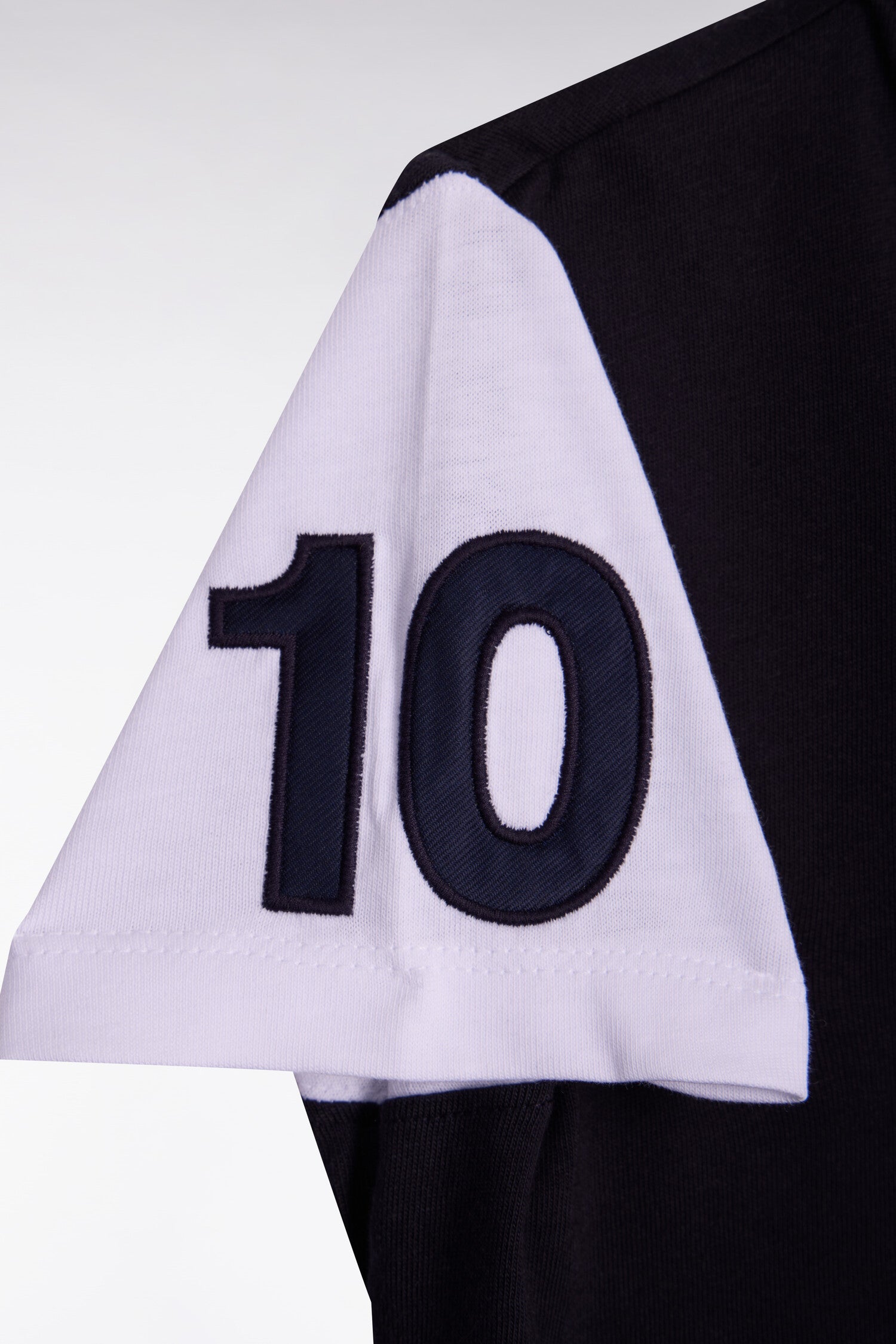 Ce T-shirt en coton marine revisite le vestiaire sport chic avec ses manches blanches contrastées et sa poche poitrine ciel. La broderie nœud papillon et la broderie 10 sur la manche rappellent l’héritage rugby de la Maison. Une coupe droite confortable, idéale au quotidien et idéale pour faciliter les jeux de superposition.