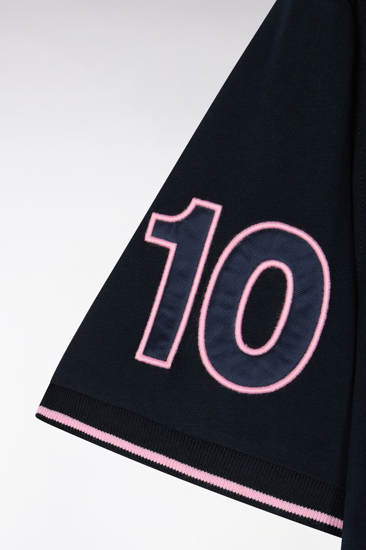 Ce T-shirt homme en jersey de coton revisite un essentiel du vestiaire masculin avec une approche graphique et des codes rugby subtils. Sa coupe droite confortable et ses finitions soignées, broderie 10 hommage au maillot de notre fondateur et bords-côtes rayés, en font une pièce facile à porter au quotidien, idéale pour composer une tenue sport chic décontractée.