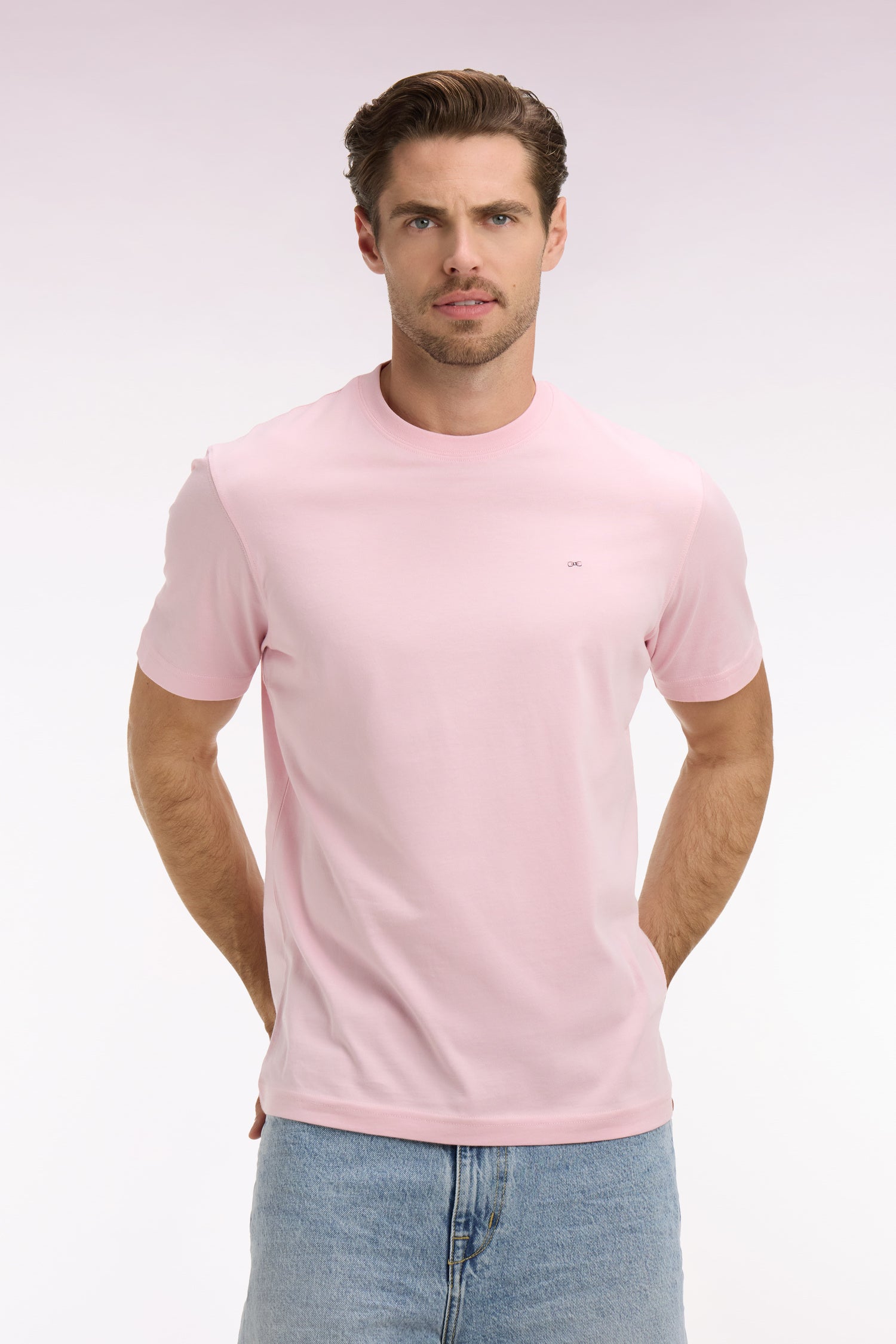 T-shirt à manches courtes en coton Pima rose brodé coupe regular