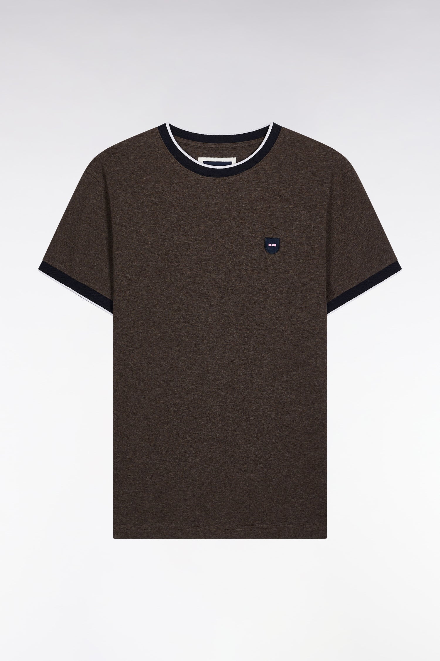Short-sleeved T-shirt in brown stretch cotton, slim fit