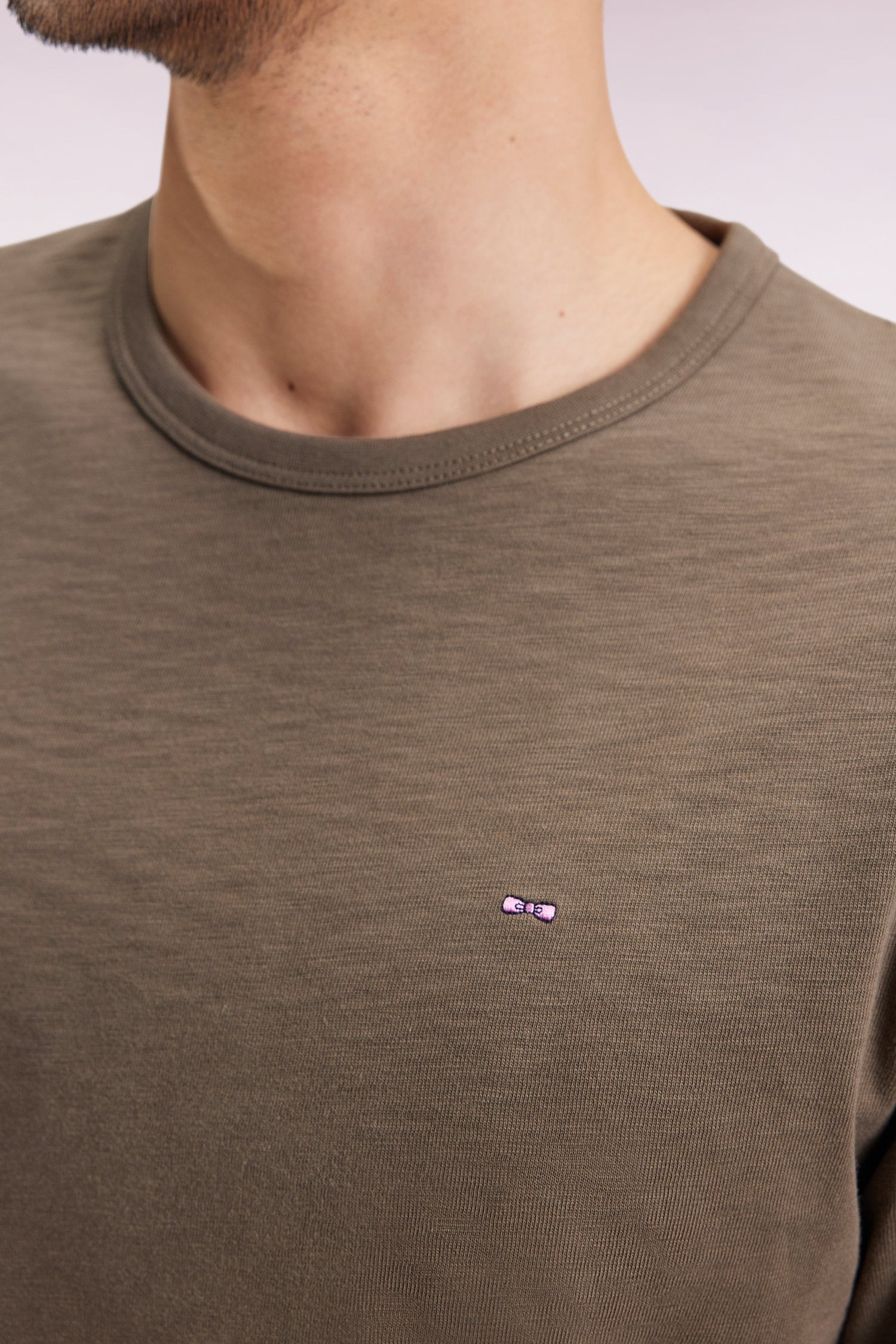This long-sleeved T-shirt is made from slub cotton jersey for a natural textured effect in a wide range of colors. The ribbed neckline gives it a comfortable fit. An everyday wardrobe staple, to be worn alone or layered.