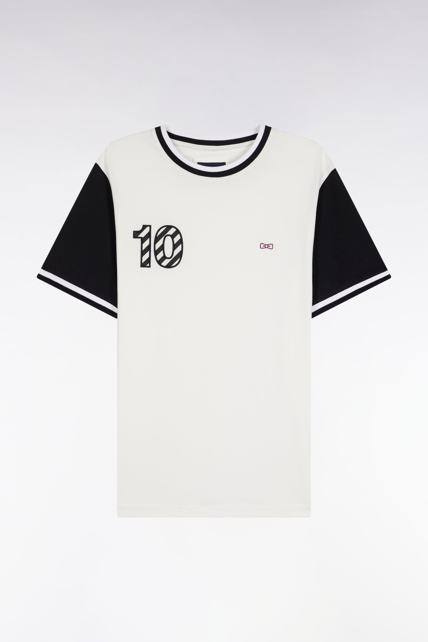 Two-tone short-sleeved T-shirt in white cotton 10" embroidery