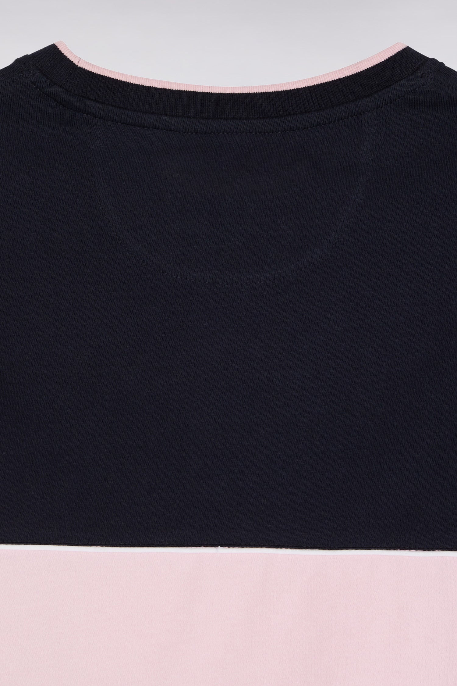Two-tone short-sleeved T-shirt in navy and pink cotton