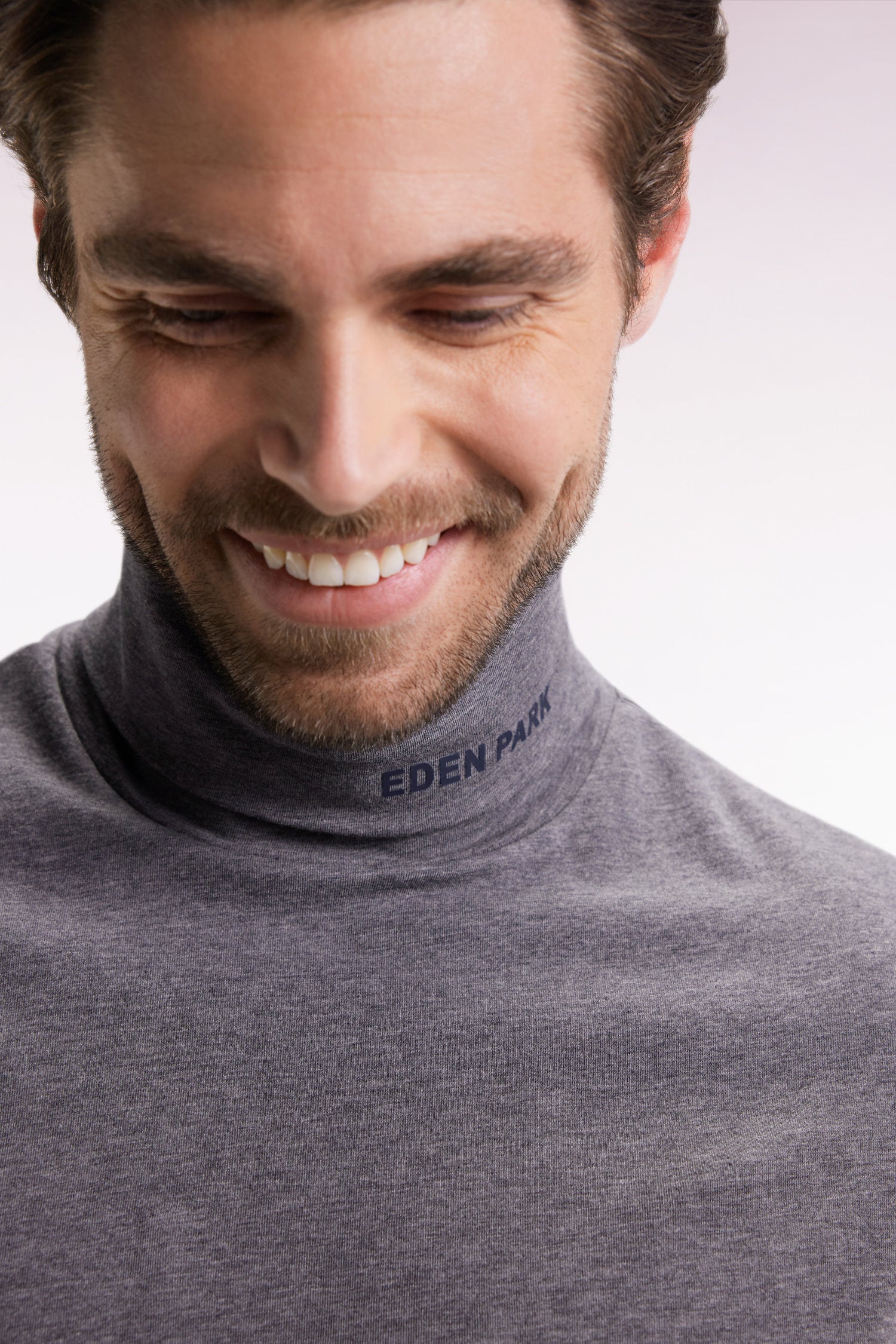 Sober and timeless, this turtleneck T-shirt in cotton jersey is a men's wardrobe staple for the winter season. Soft and supple, it ensures optimum comfort, while the turtleneck is discreetly embellished with the Eden Park signature. A second-skin piece, ideal for layering at the first sign of cold weather, in gray or navy blue.