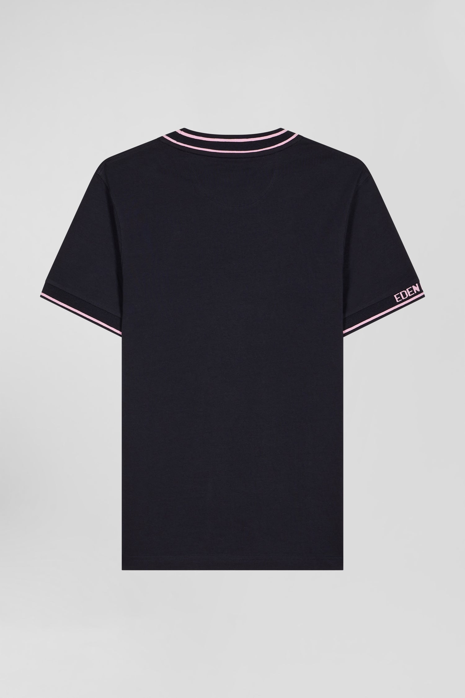Slim navy blue short-sleeved cotton T-shirt with Eden Park ribs
