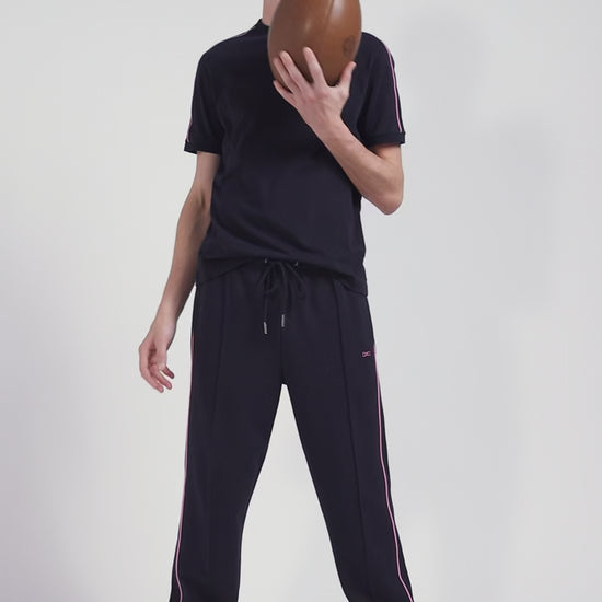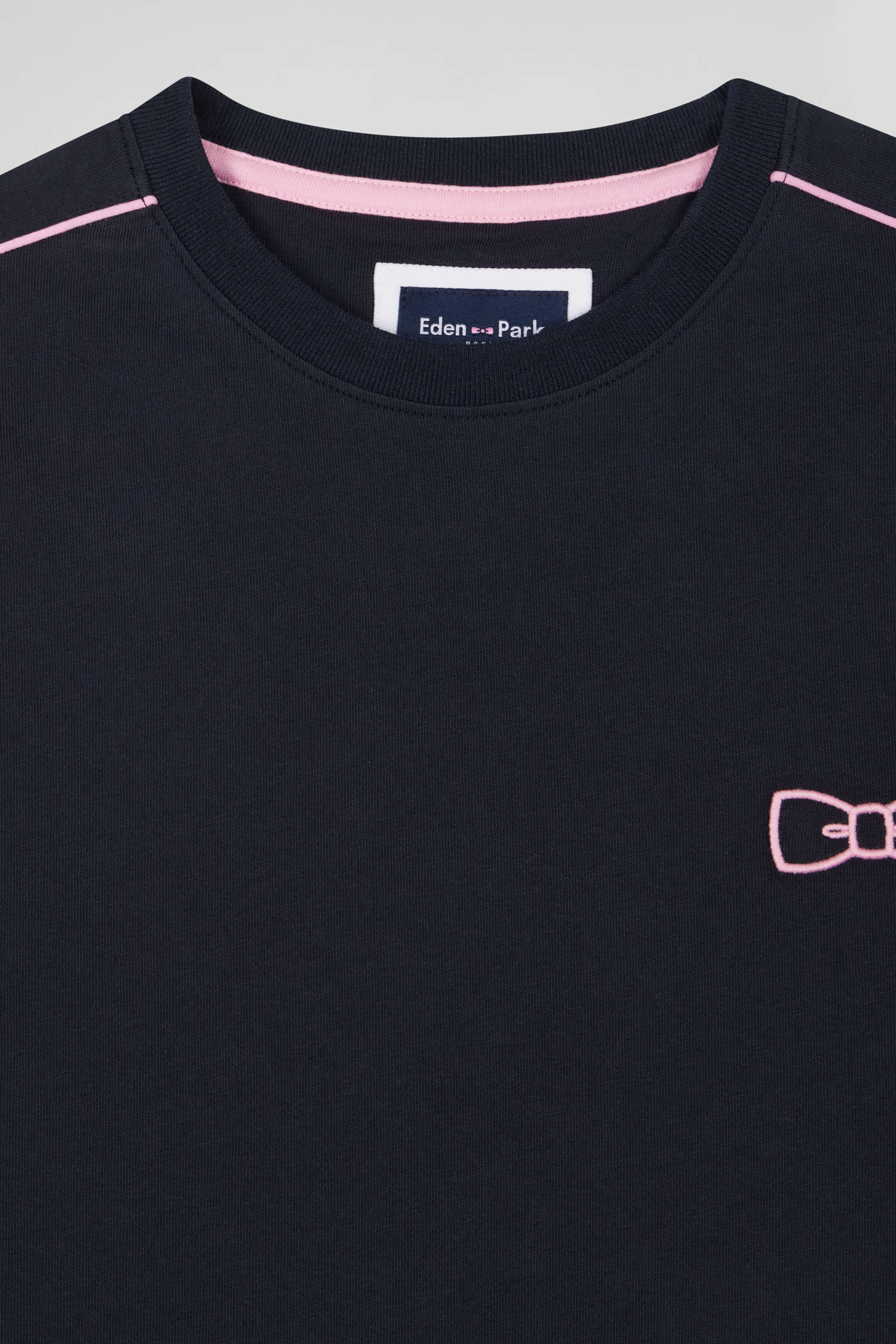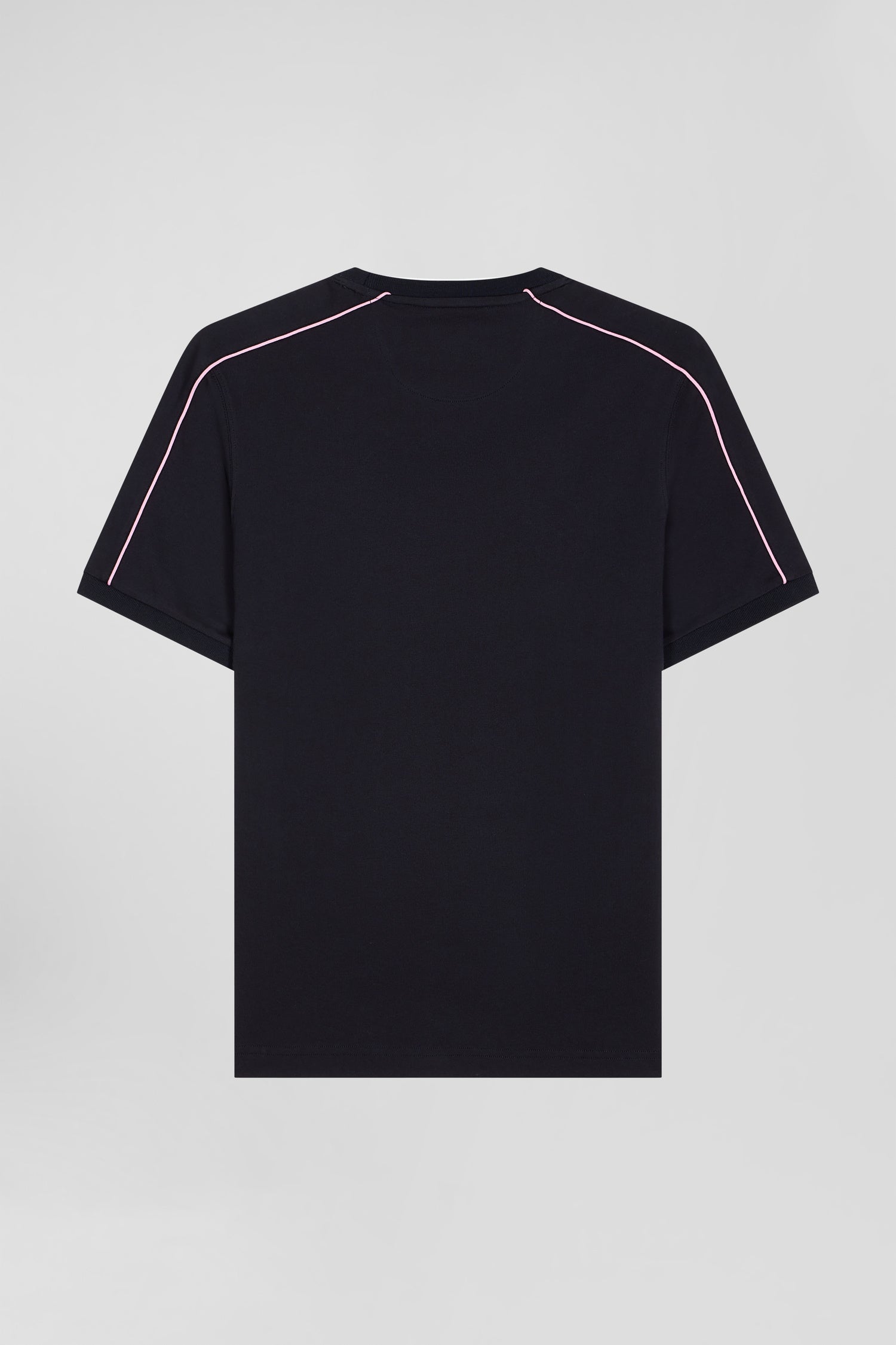 Regular navy short-sleeved cotton T-shirt with pink piping