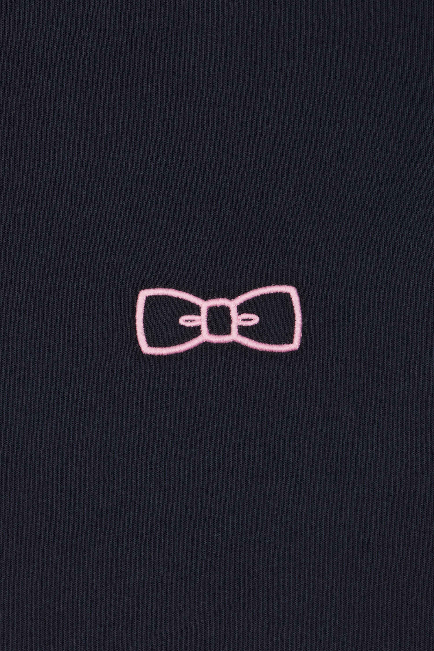 This straight-cut T-shirt in navy blue cotton features carefully crafted contrasting details. Piping accentuates the shoulder line, while the emblematic bow tie in volume gives this model its signature look.