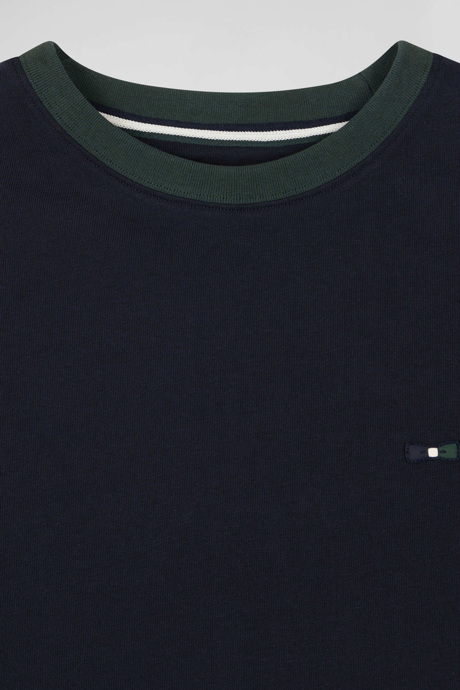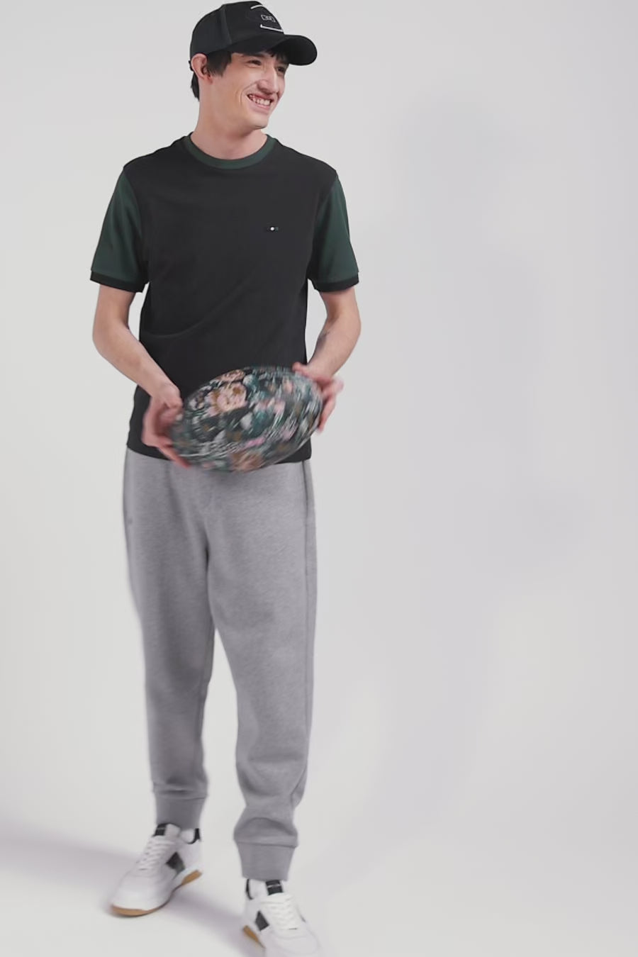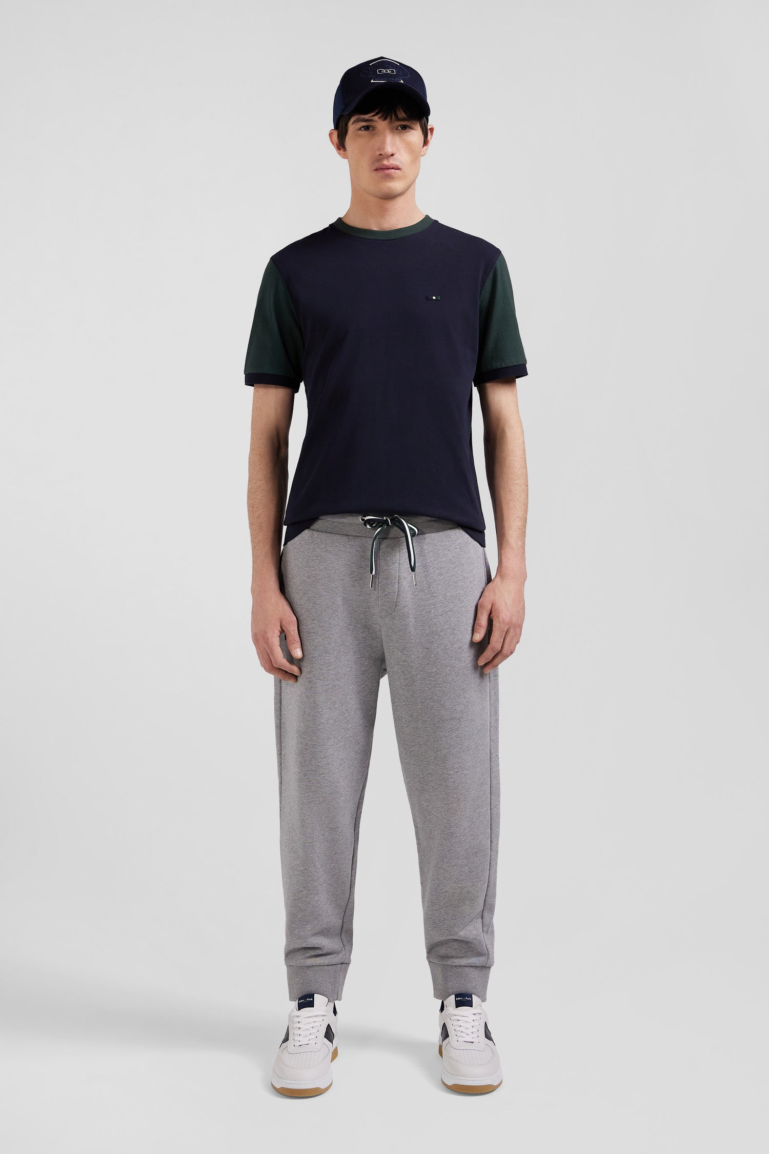 Our top-of-the-range cotton men's T-shirt is embellished with our House's iconic elements assembled in intricate back embroidery. For a graphic touch, this two-tone T-shirt features contrasting sleeves inspired by sportswear.
