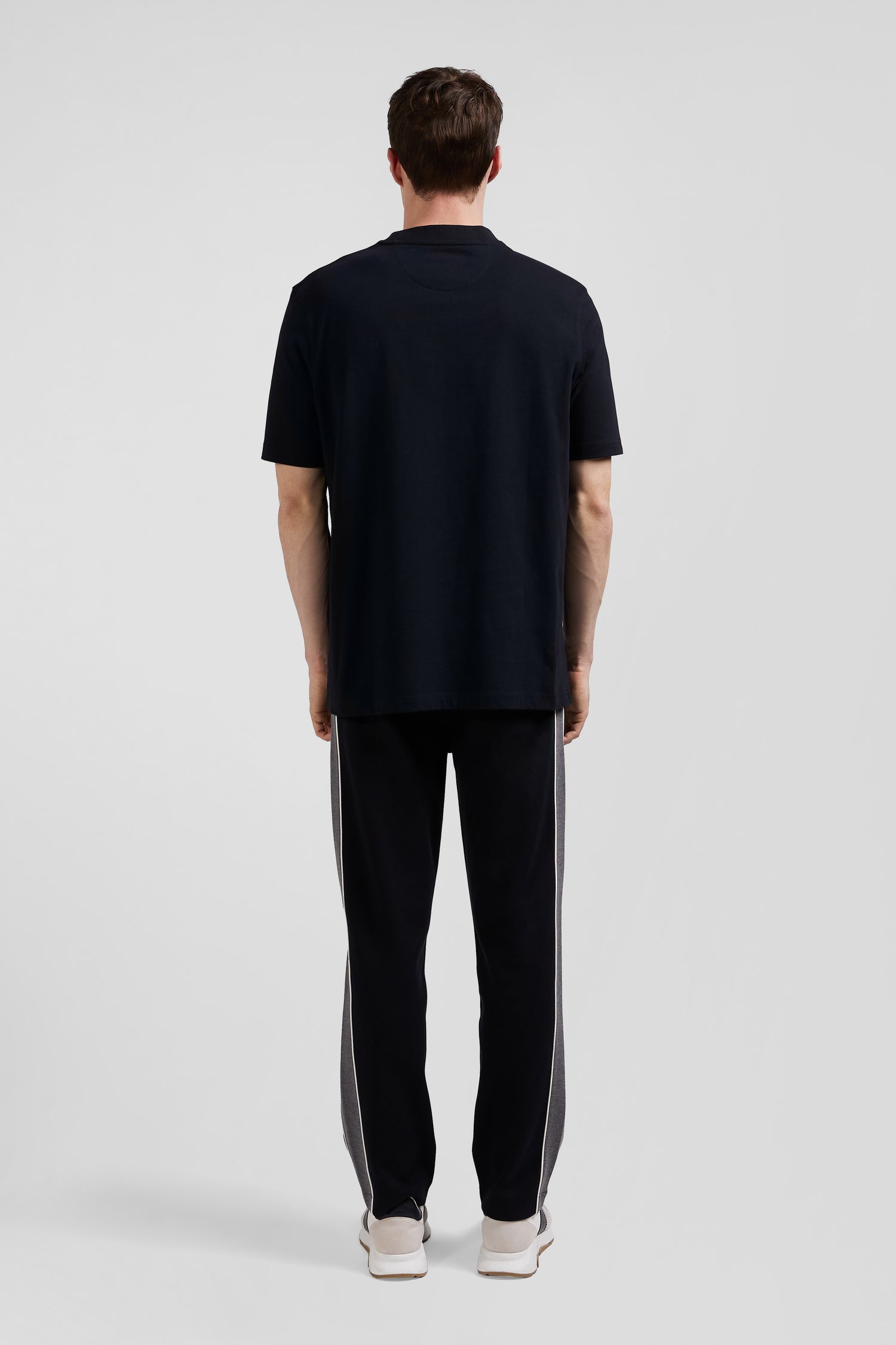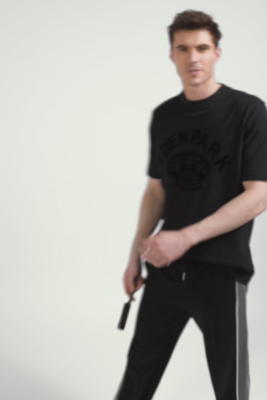 Inspired by varsity, this men's T-shirt features an ecru velvet appliqué on a navy background, or tone-on-tone for the black version. With its oversized cut, this T-shirt promises comfort and style for everyday wear.