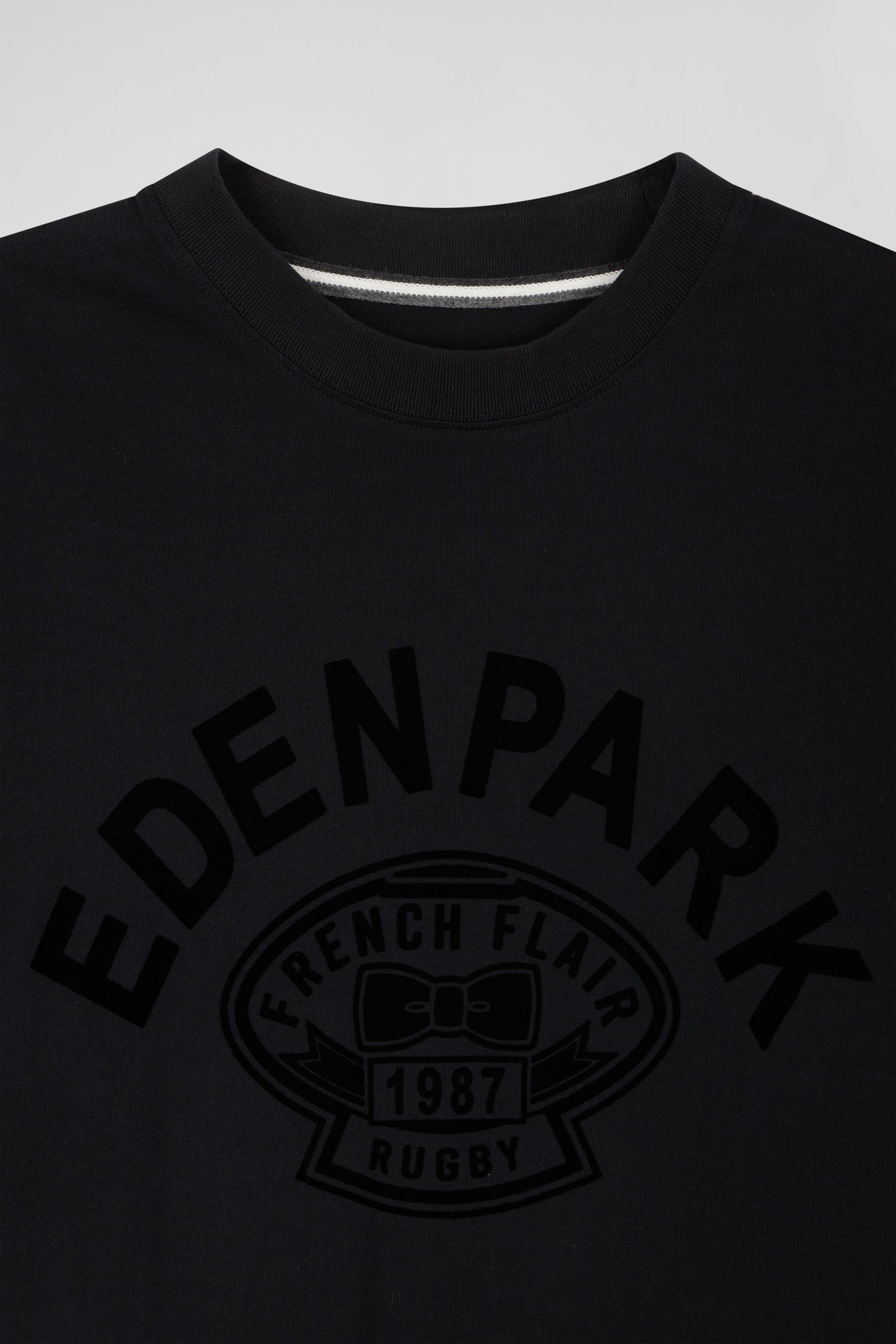 Oversize black short-sleeved cotton T-shirt with Eden Park Rugby print