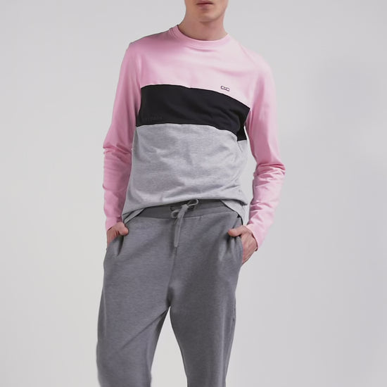Regular pink colorblock long-sleeved cotton T-shirt