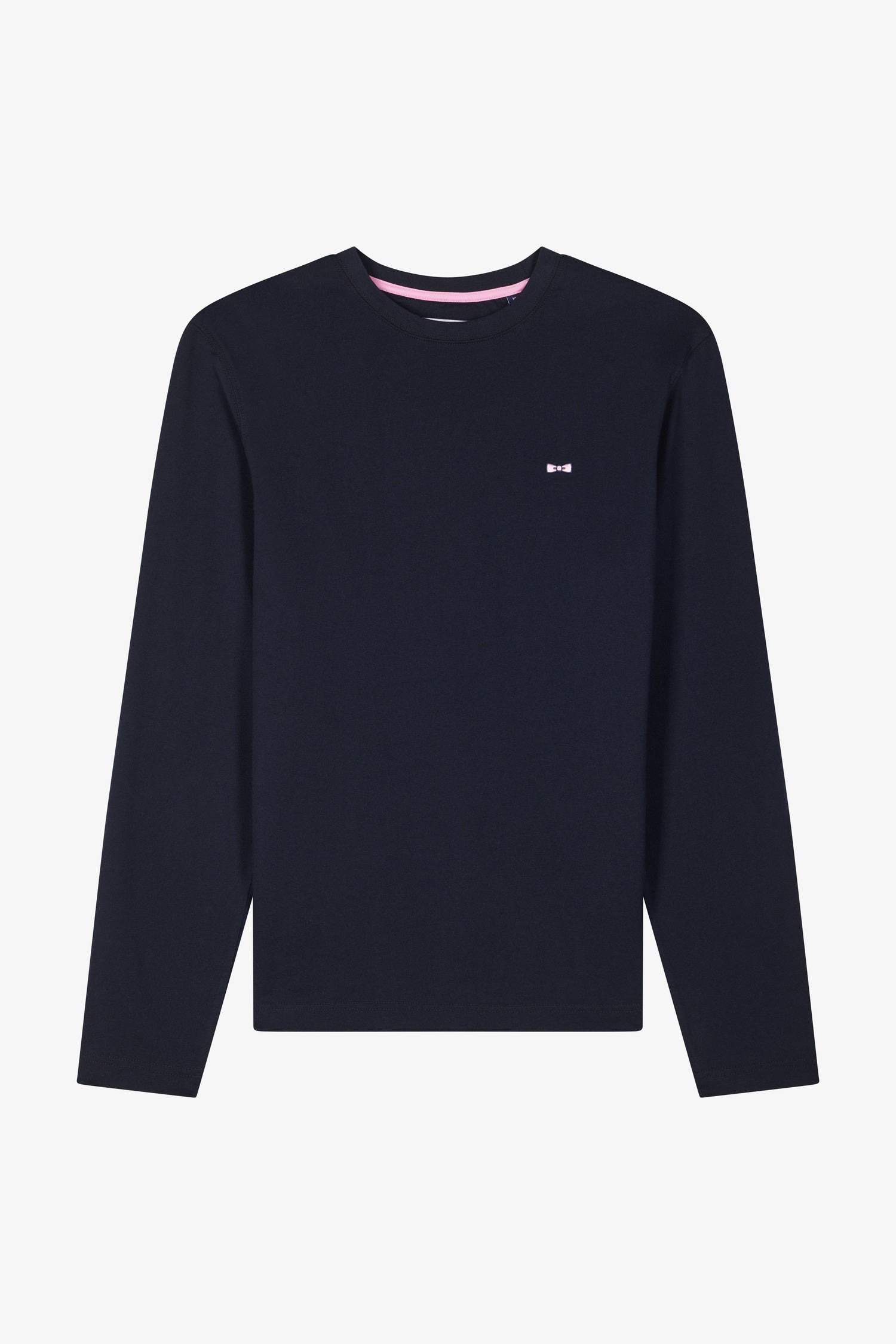 Regular navy long-sleeved cotton T-shirt with N°10 embroidery