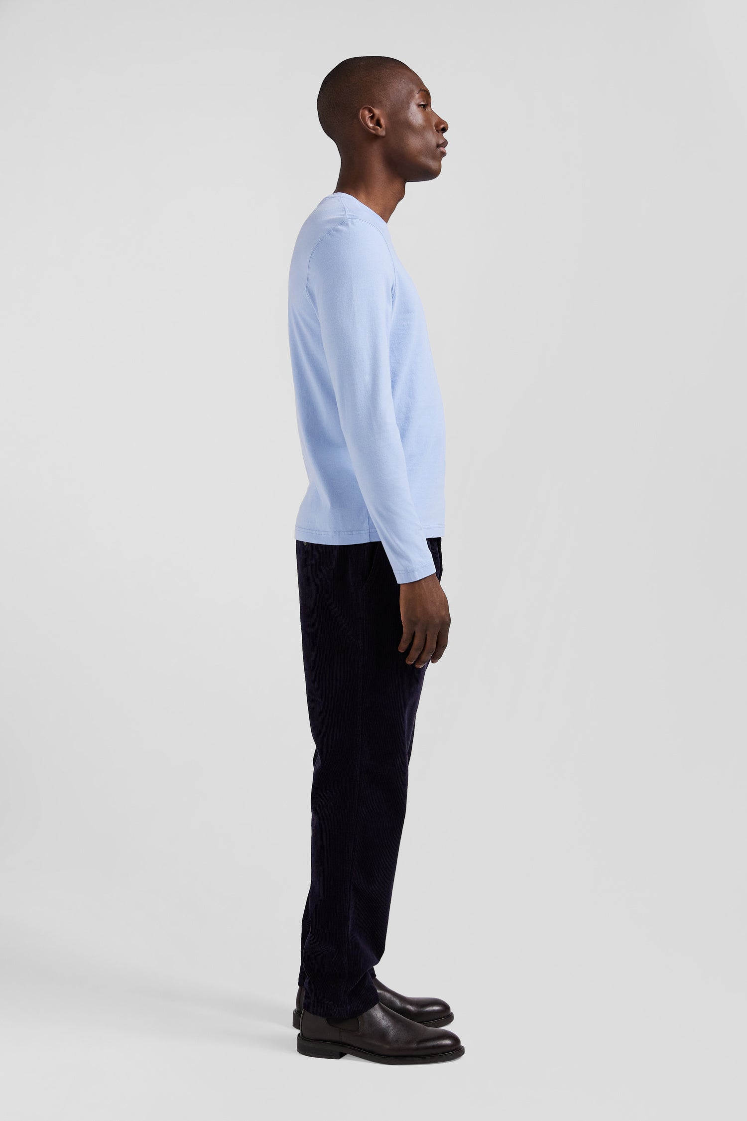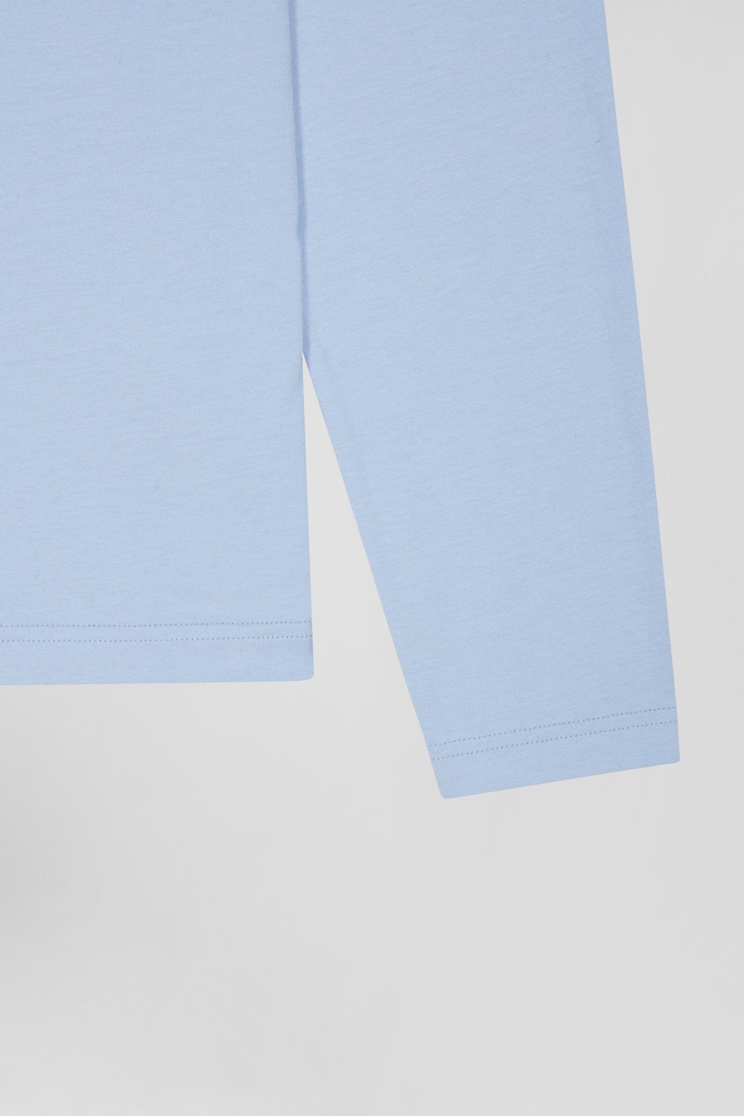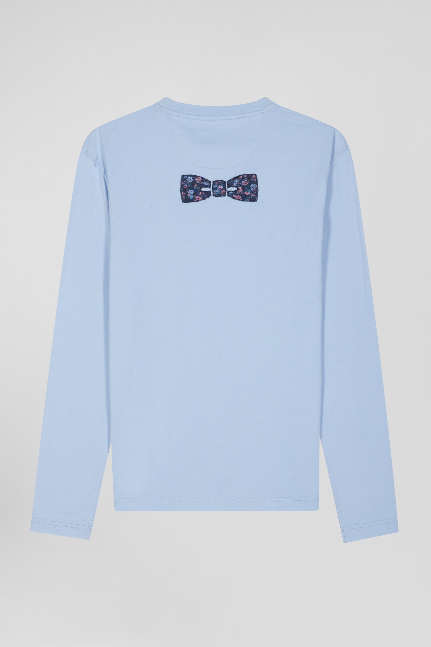 Regular sky blue long-sleeved cotton T-shirt with floral back patch