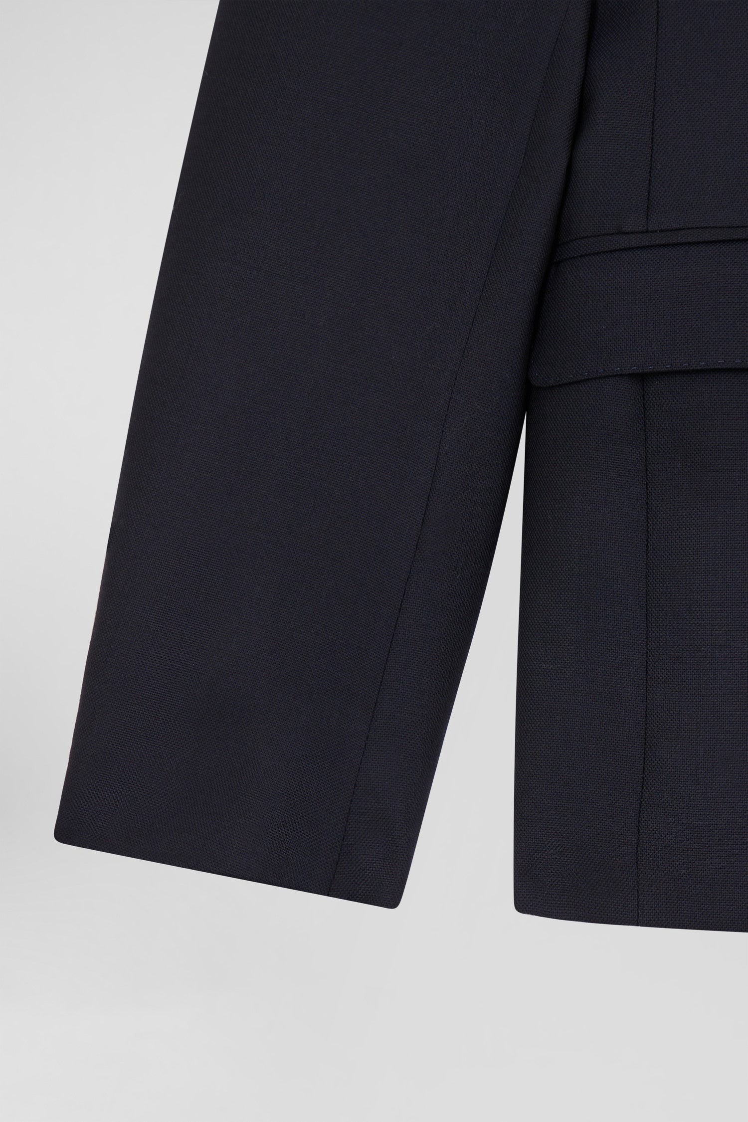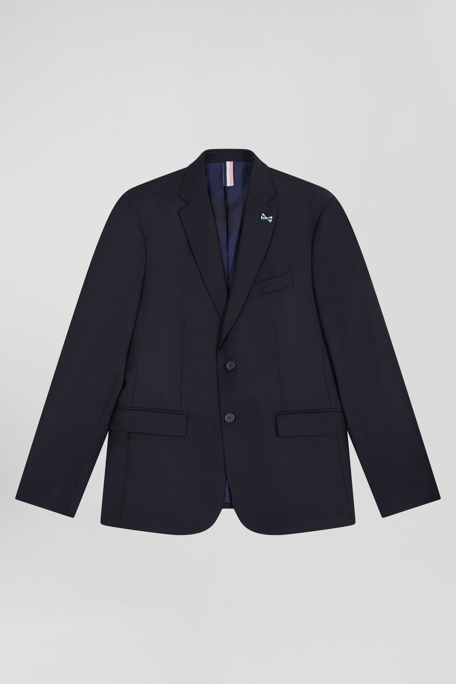Enjoy the timeless elegance of our navy wool blazer, carefully crafted to combine tradition and sport-chic. This blazer features a classic collar and two-button structure, with a single slit at the back for optimal mobility. Its distinctive feature is the hooped lining, a subtle nod to the aesthetics of our rugby jerseys. Perfect for the office or formal occasions, this men's jacket celebrates the French Flair spirit typical of our House.