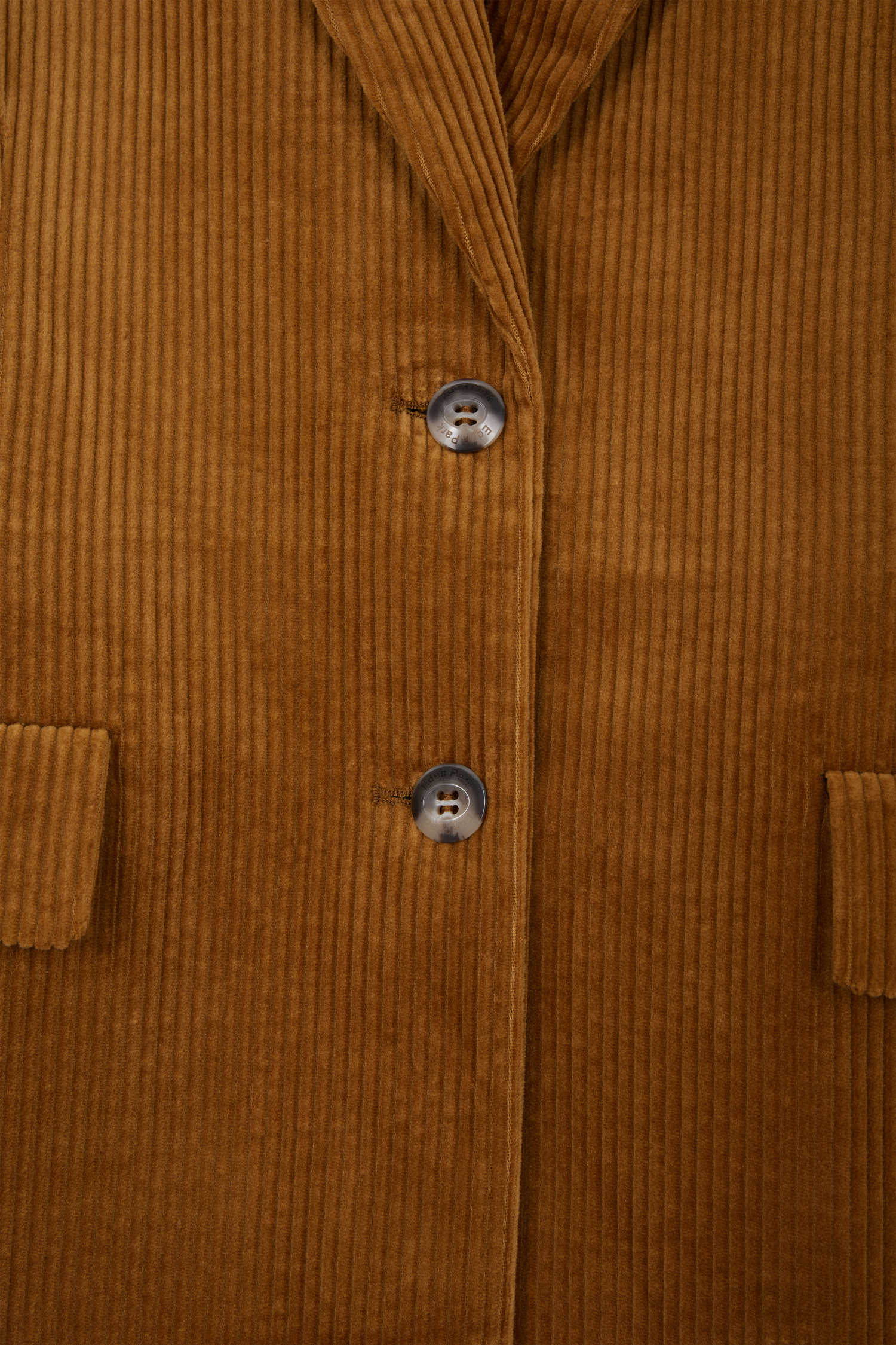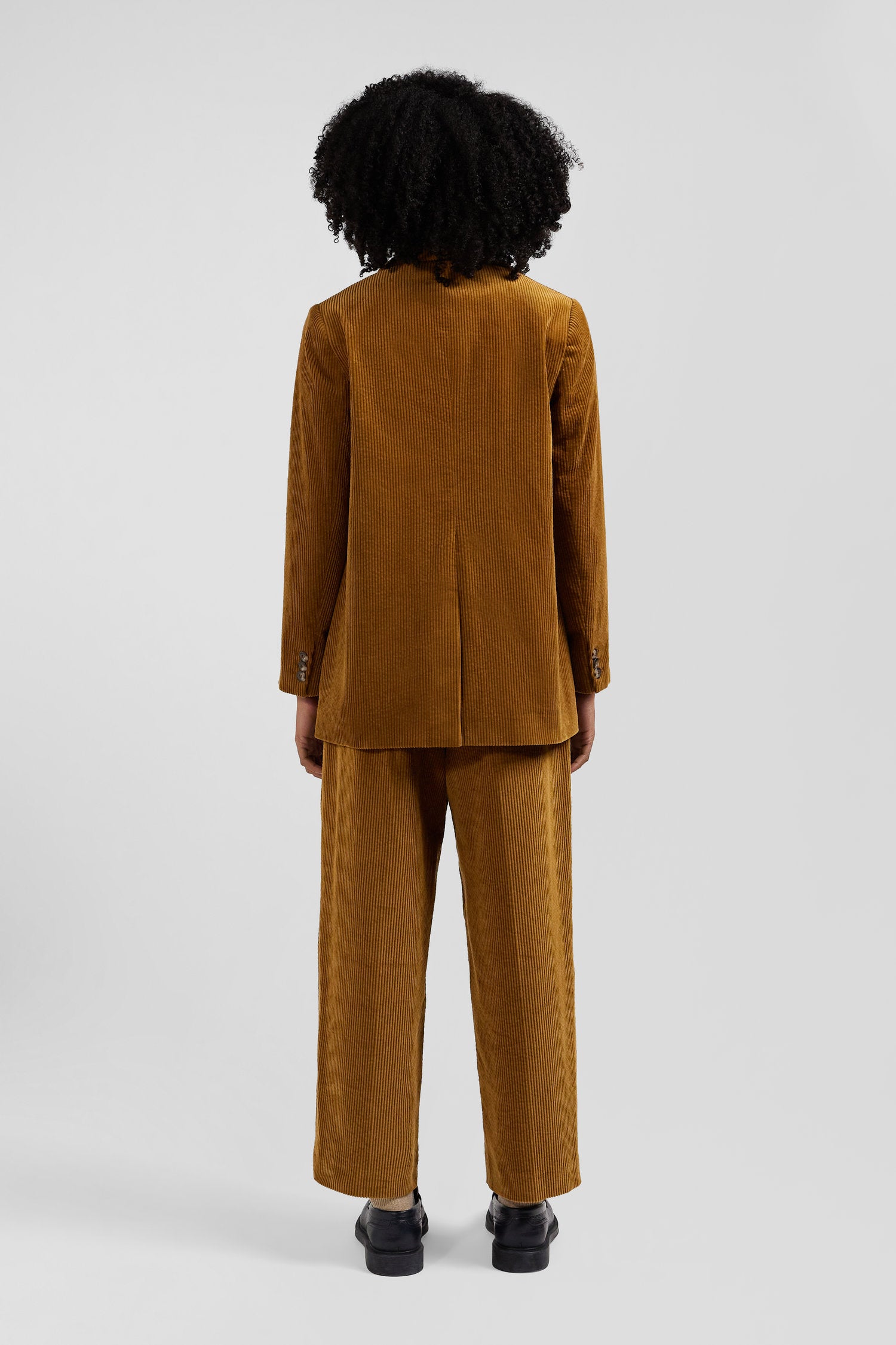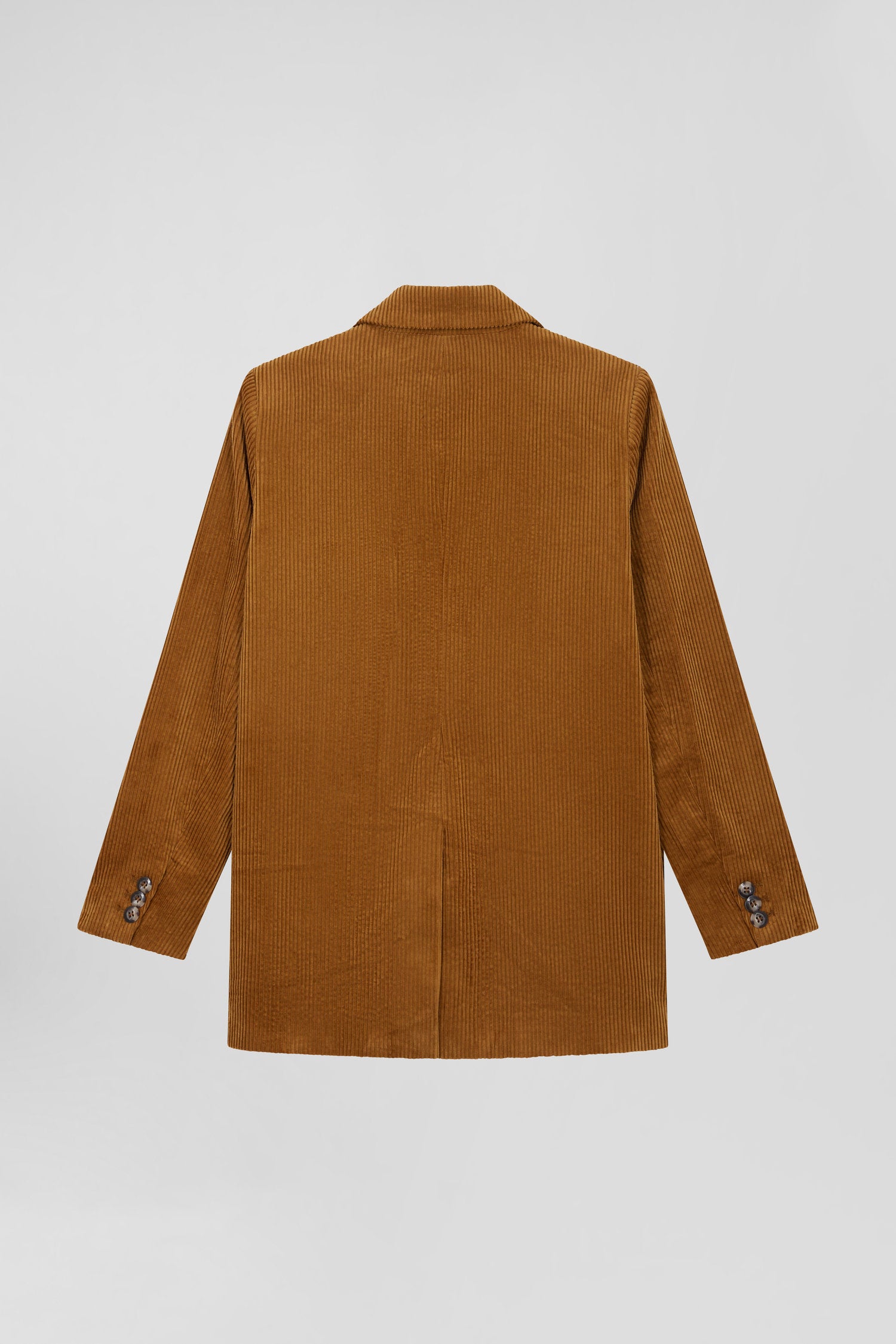 Authentic and trendy at the same time, this hazelnut corduroy blazer with a Modern cut reworked for greater ease is designed for those seeking to combine comfort and style. Featuring a single button and notched collar, it is ideal for wearing with matching pants for a harmonious, elegant ensemble. This finely finished blazer is an excellent choice for formal occasions or a sharp autumn outfit.